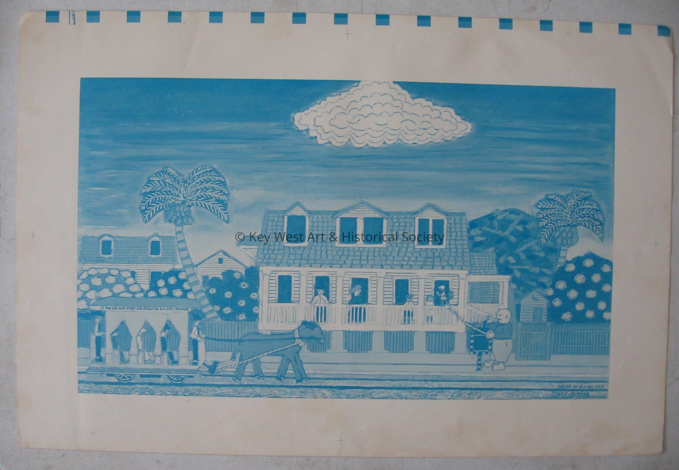 Printers proof of Relics of Old Key West color separated into dark and light blue.