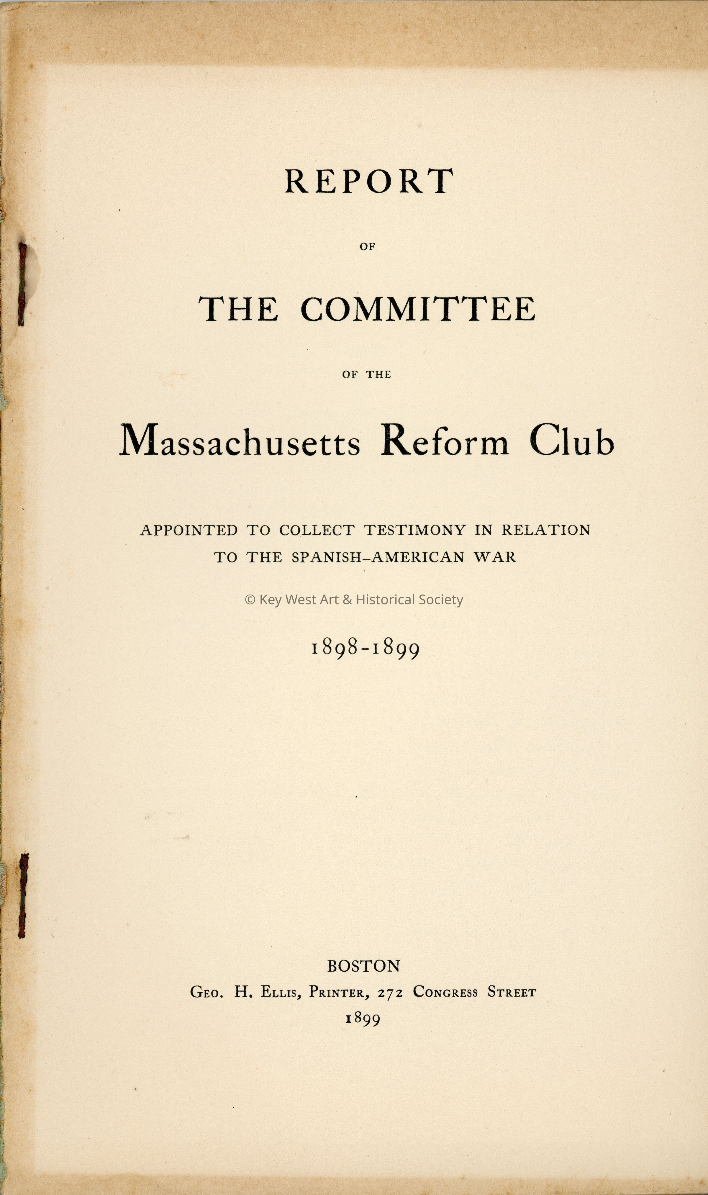 The report of a five man 'War Investigation Committee' that interviewed military personnel and civilians involved with the Spanish-American War in order to better understand how to improve the military and future war efforts.Collection