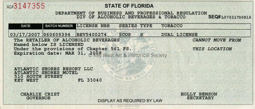 Retailer of Alcoholic Beverages License Atlantic Shores