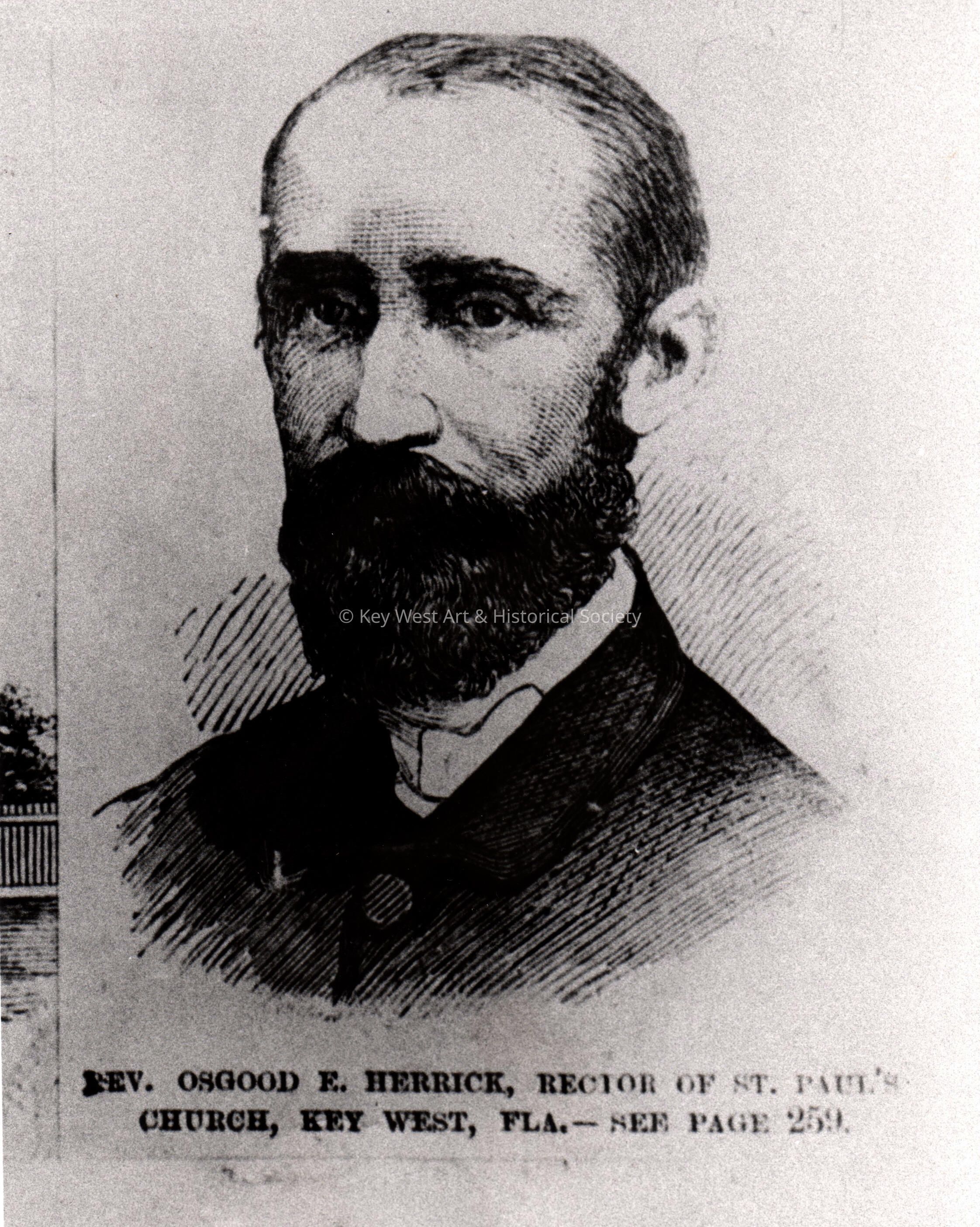 Black and white photograph of a print depicting the Reverend Osgood E. Herrick, Rector of St. Paul's Church at 401 Duval Street.