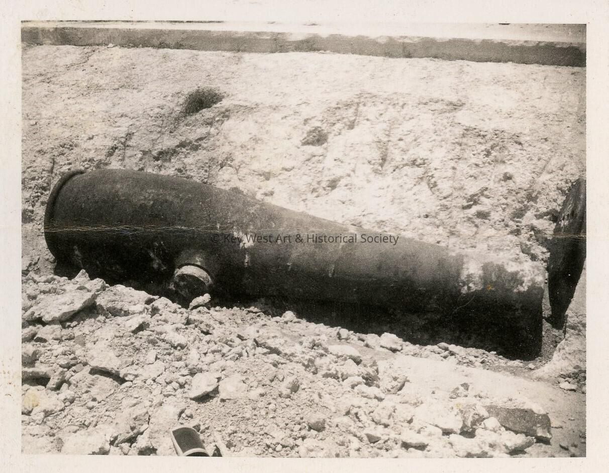 Black and white photograph of a Rodman gun, a Civil War-era columbiad, that was placed at Fort Zachary Taylor.