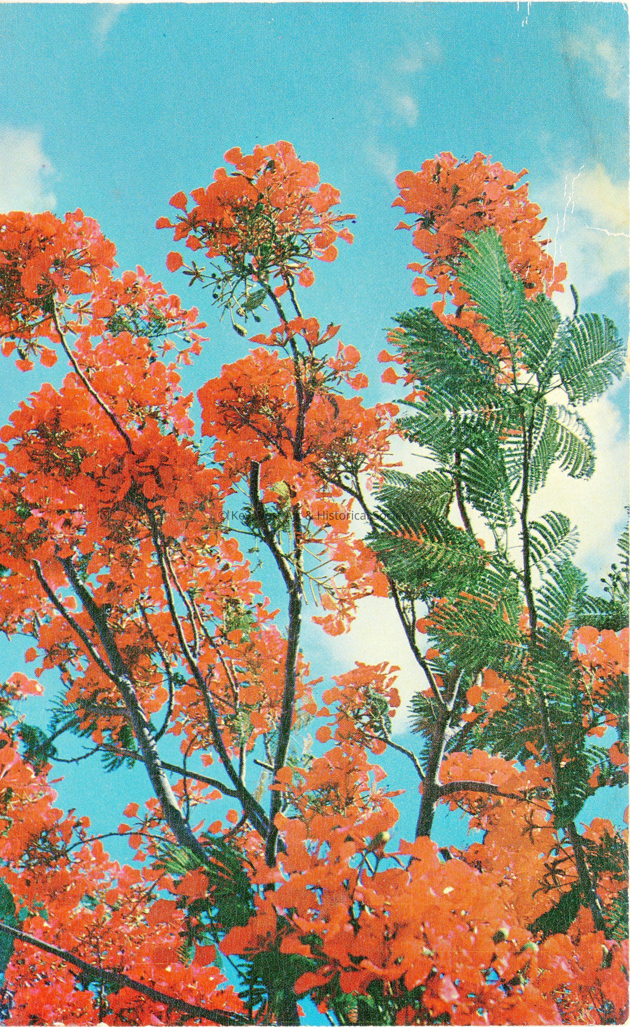 Postcard depicting a blooming Royal Poinciana tree.