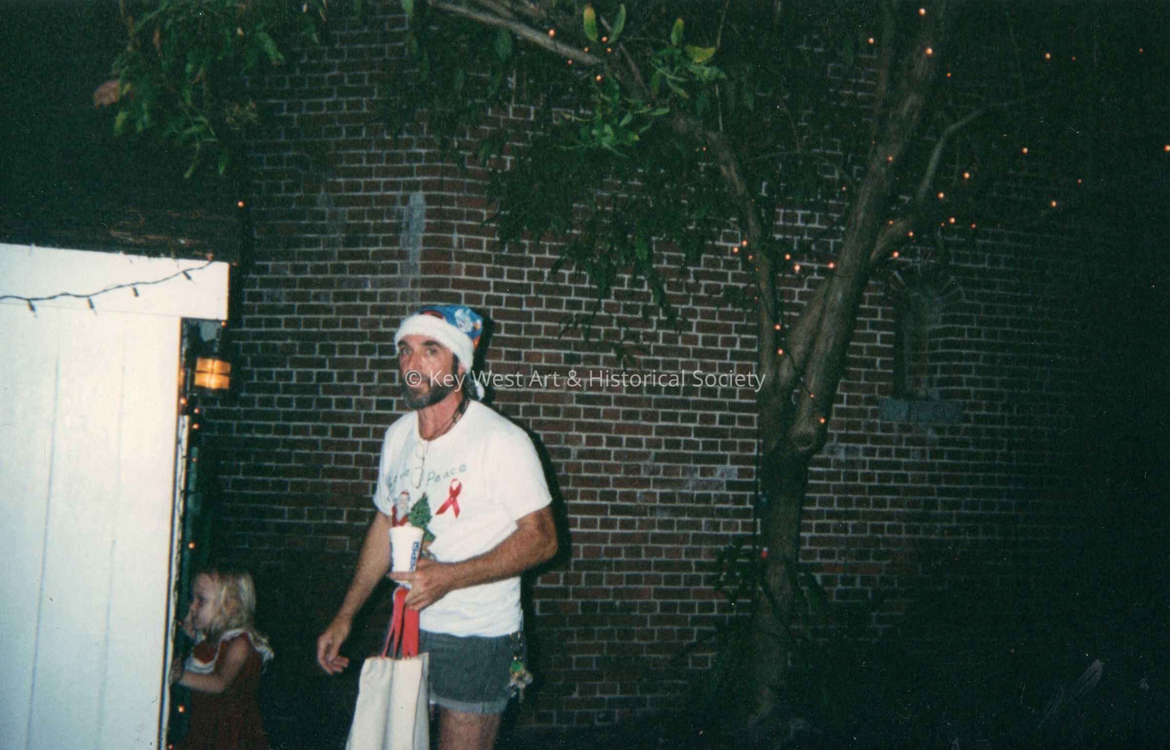 Russ in Santa hat, and child (Harmony) at East Martello, in 1994.Collection