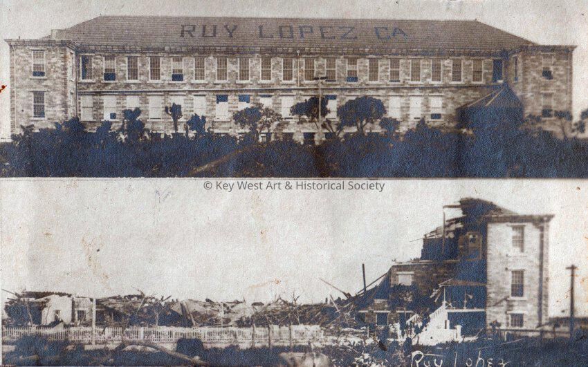 Ruy Lopez Cigar Factory in Key West, before and after the storm of October 11, 1909.Collection