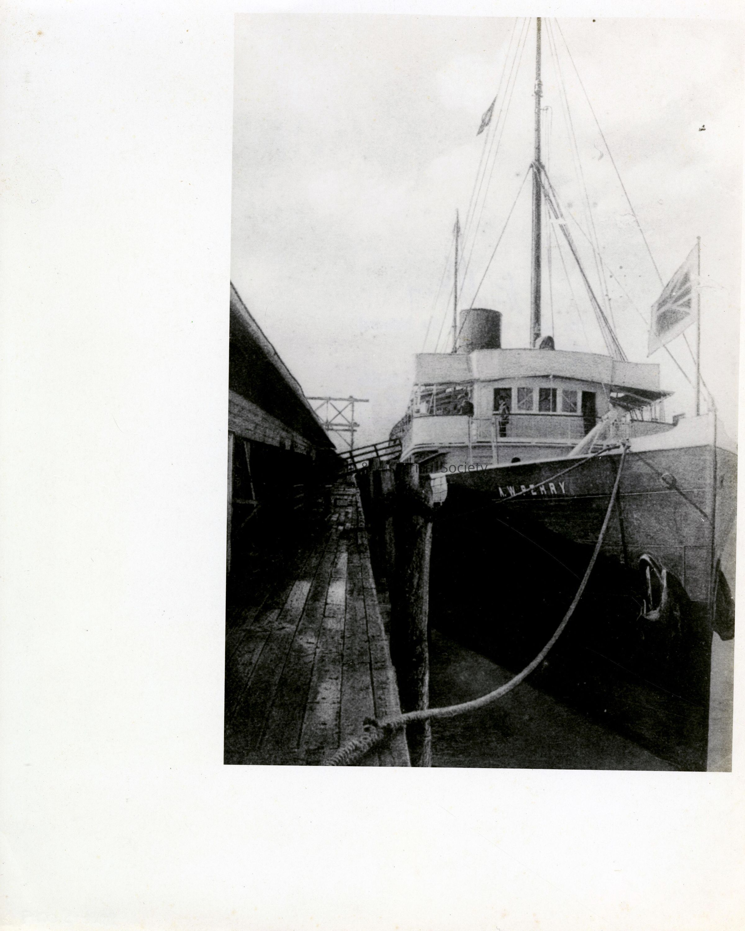 Black and white photograph of the Plant Line steamship A.W. PERRY at Knights Key Dock, belonging to the Florida East Coast Railway.