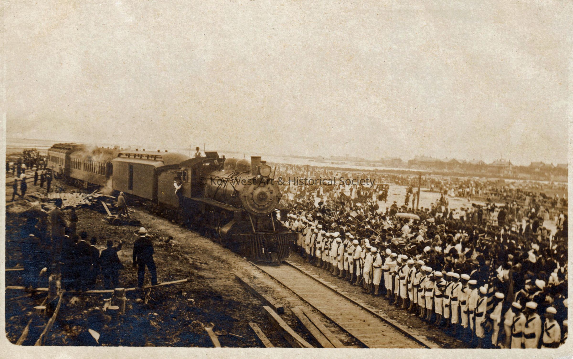 Sailors lining the tracks as a train approachesEntry/Object ID