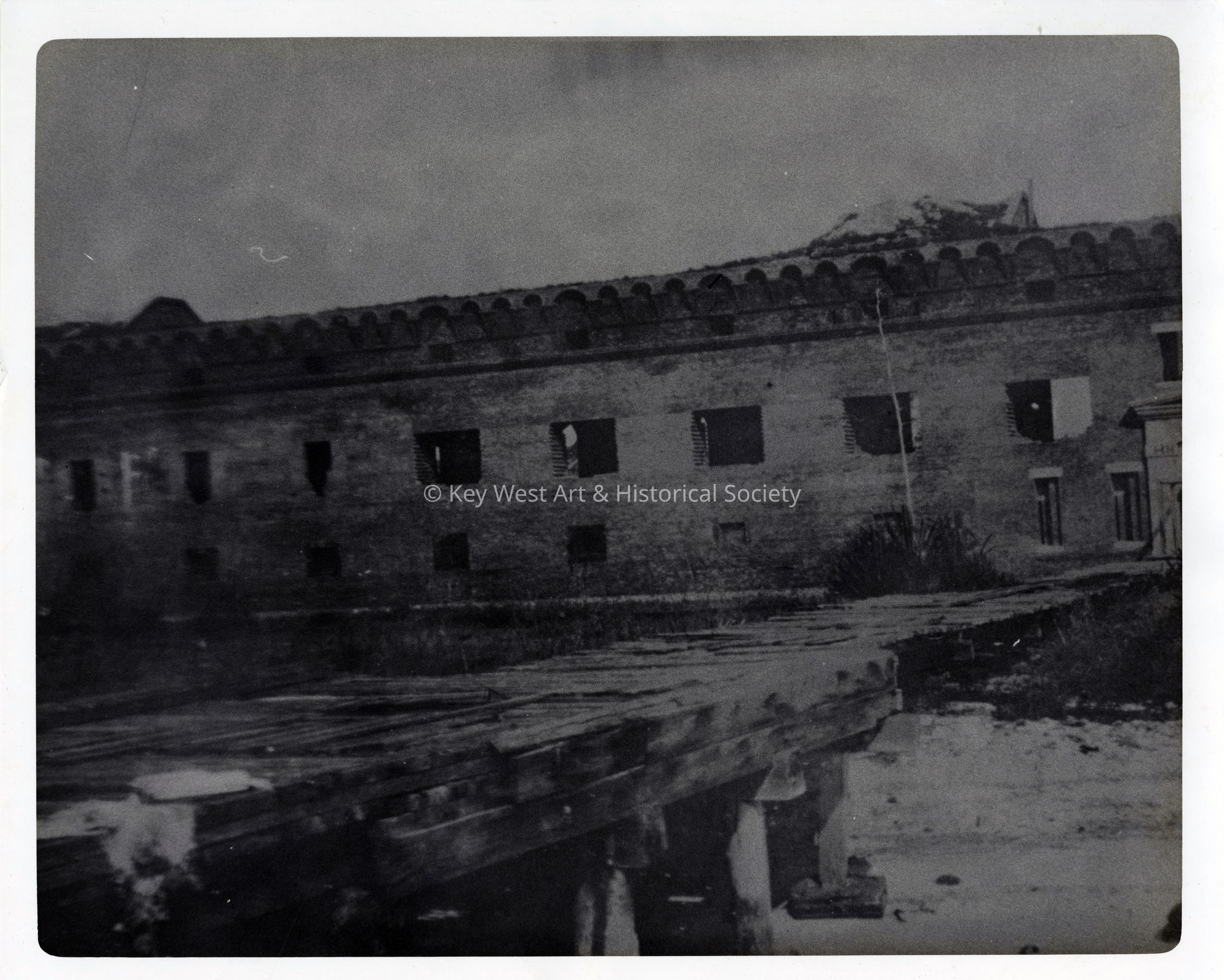 Black and white photograph of the sallyport entrance wall at Fort Jefferson in the Dry Tortugas.