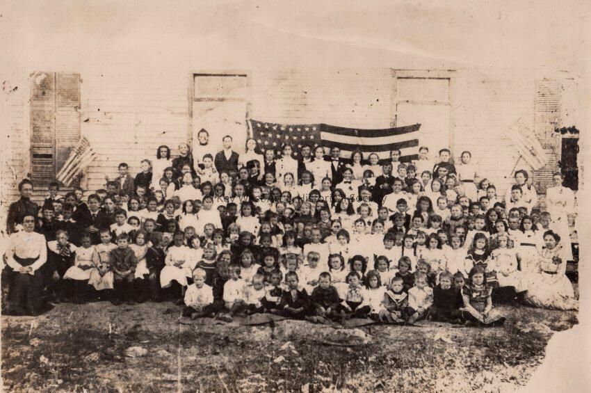 Large group of children in a San Carlos School class picture.