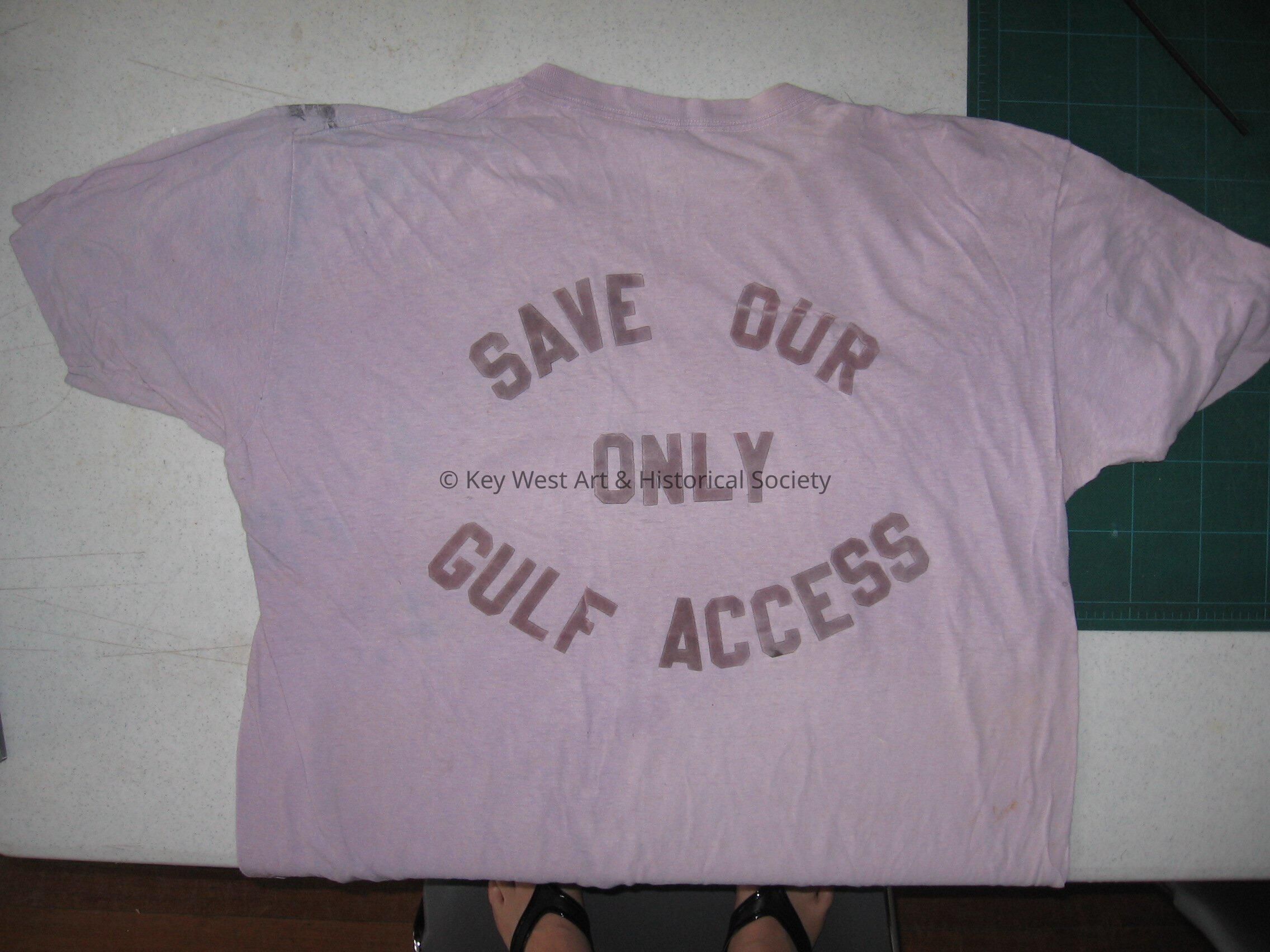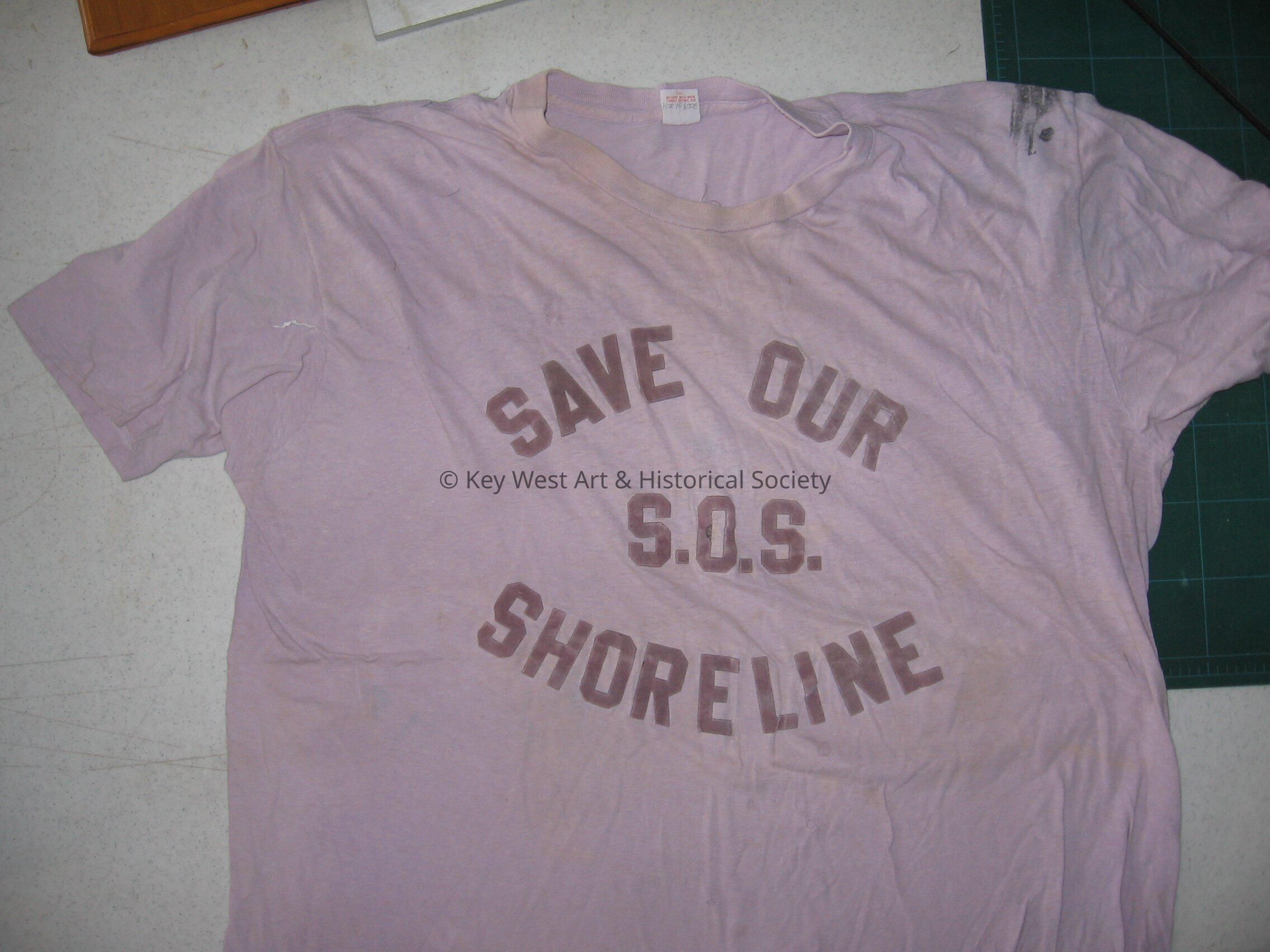 Purple t-shirt that reads (front) "Save our S.O.S. Shoreline" (back) "Save Our Only Gulf Access."Collection