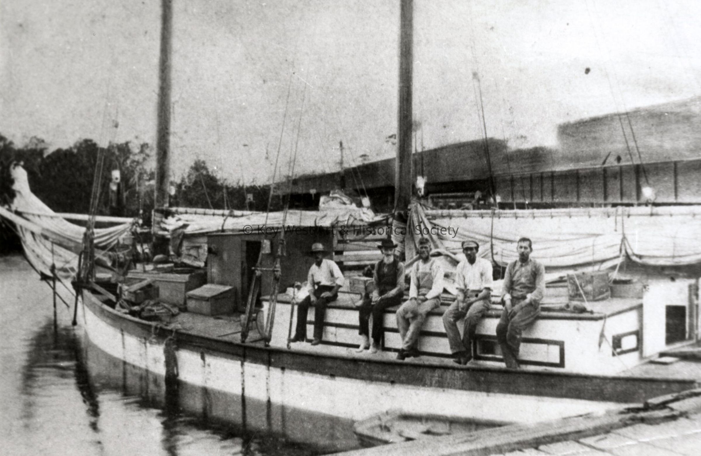 In 1903, when sail was still the only means of transport in the Florida Keys, John 'Bush' Pinder, a Plantation Key farmer, had the schooner Island Home built to carry his pineapples to market and to provide freight and passenger service to other settlements along the Keys. The schooner was built on Plantation Key by a part Black, part Indian Bahamian known as 'Old Whiskers' Wilkerson.Photograph Details