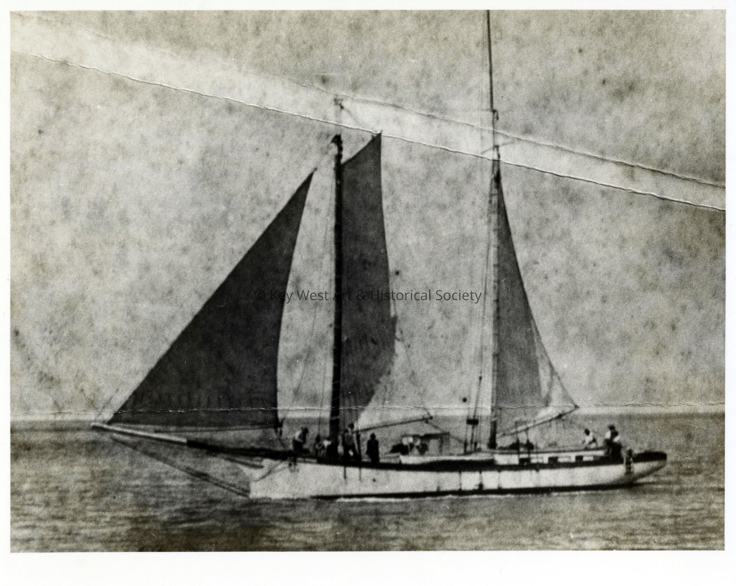 In 1903, when sail was still the only means of transport in the Florida Keys, John 'Bush' Pinder, a Plantation Key farmer, had the schooner Island Home built to carry his pineapples to market and to provide freight and passenger service to other settlements along the Keys. The schooner was built on Plantation Key by a part Black, part Indian Bahamian known as 'Old Whiskers' Wilkerson.Photograph Details