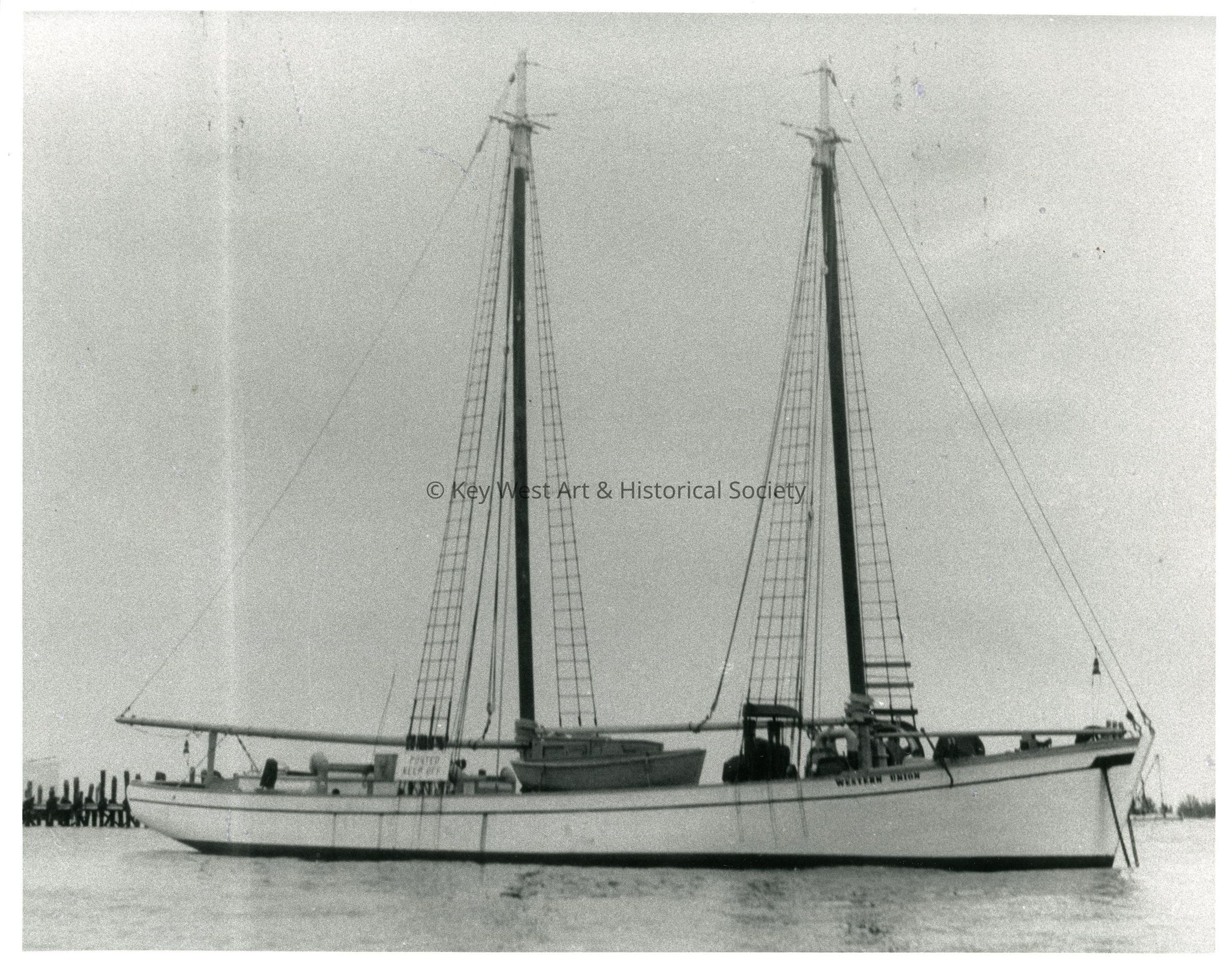 Black and white photograph of the schooner WESTERN UNION at anchor off Key West near the Bight.