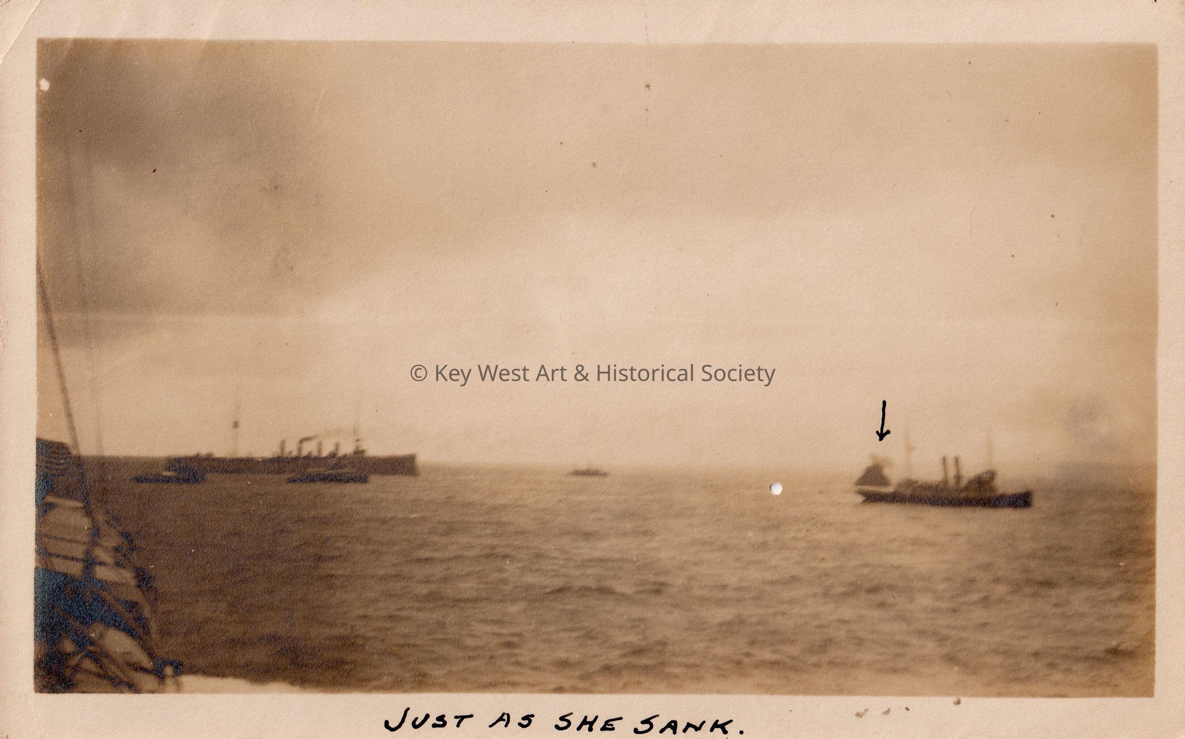 The U.S.S. MAINE during its second sinking off Havana, Cuba, on March 27, 1912. The photo was taken just as the ship was sinking below the water's surface.Collection