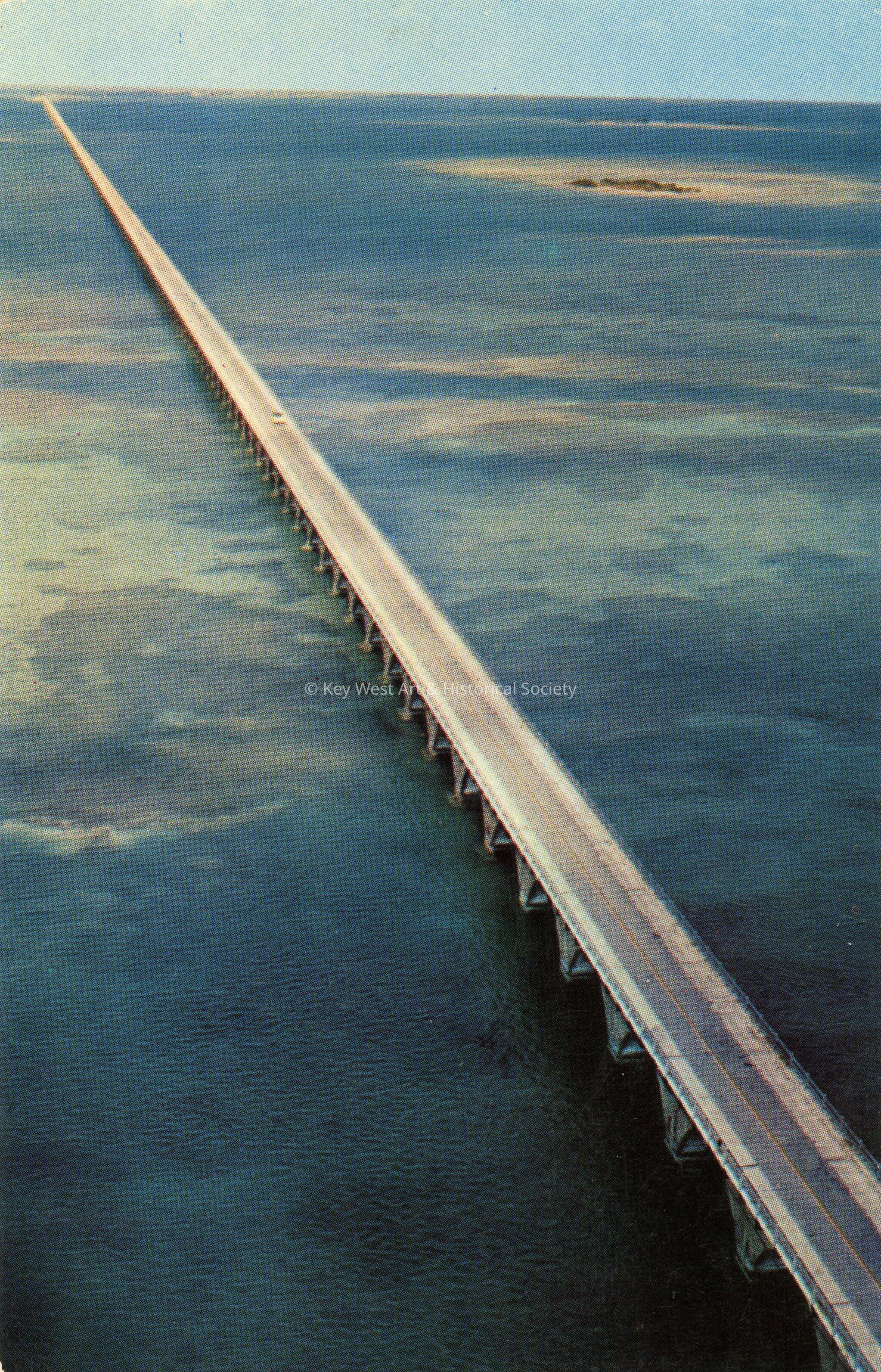 Postcard view of the Seven Mile Bridge. Notation on verso, 'Aerial view of the Seven Mile Bridge Overseas Highway, in the Florida Keys.'Collection