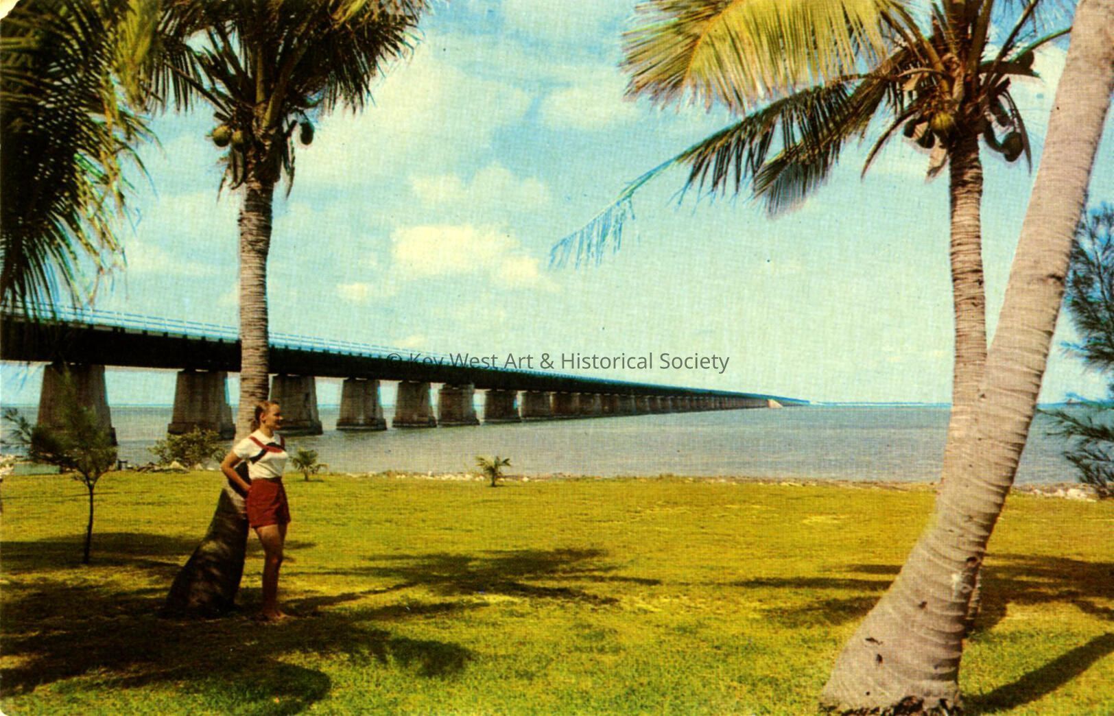 Postcard depicting the Seven Mile Bridge of the Overseas Highway taken from Pigeon Key. Notation on verso, 'Seven Mile Bridge as seen from Pigeon Key on the Overseas Highway to Key West, Florida.'Subject Place