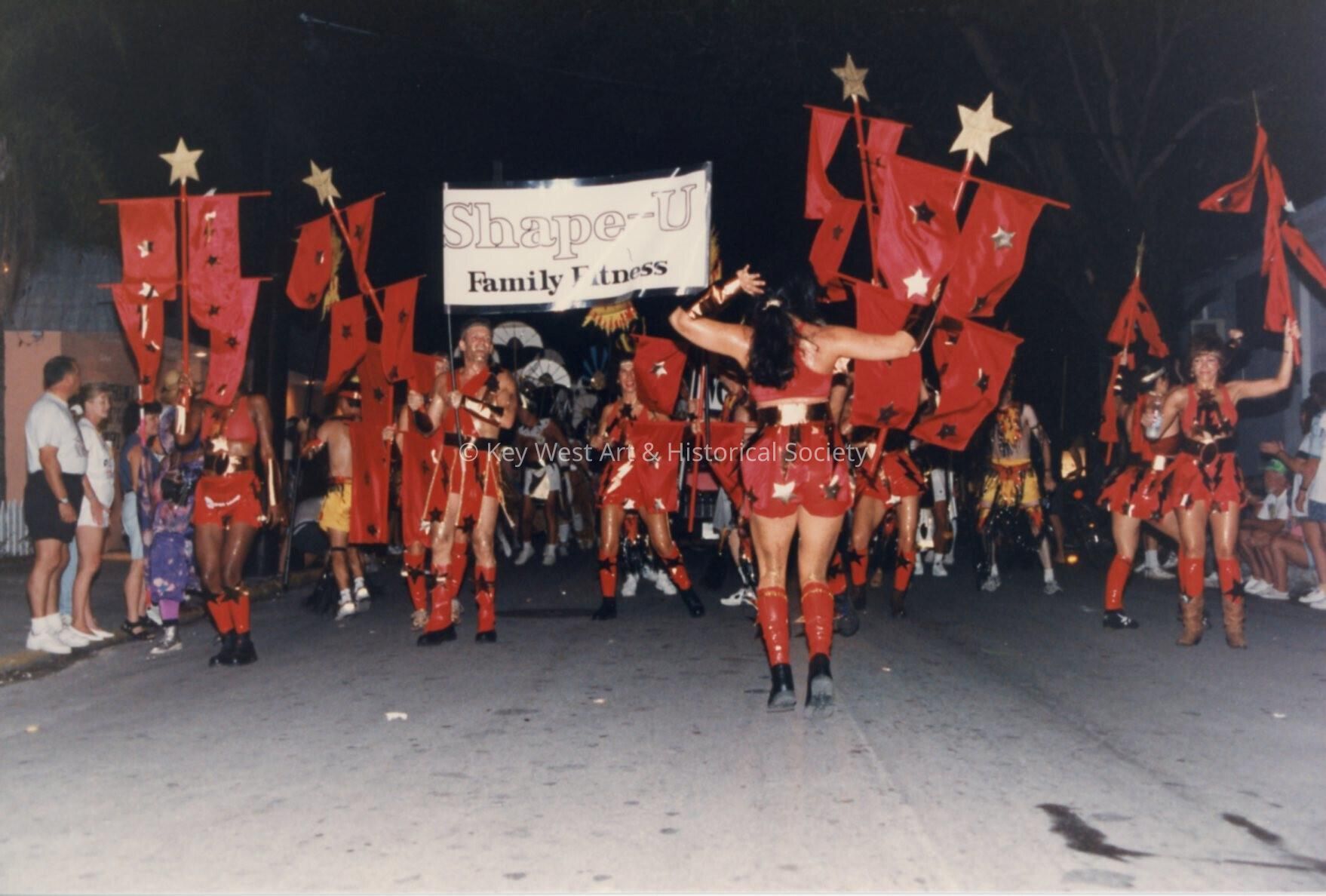 Shape U family fitness people walking in the parade.Entry/Object ID