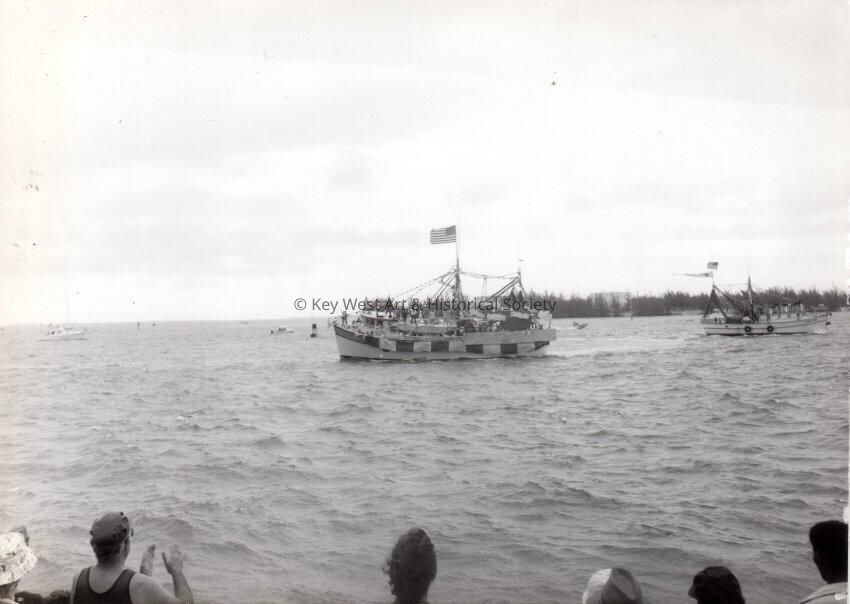 Crowd watching a shrimp boat decorated as "Sunset at Mallory Square".Collection