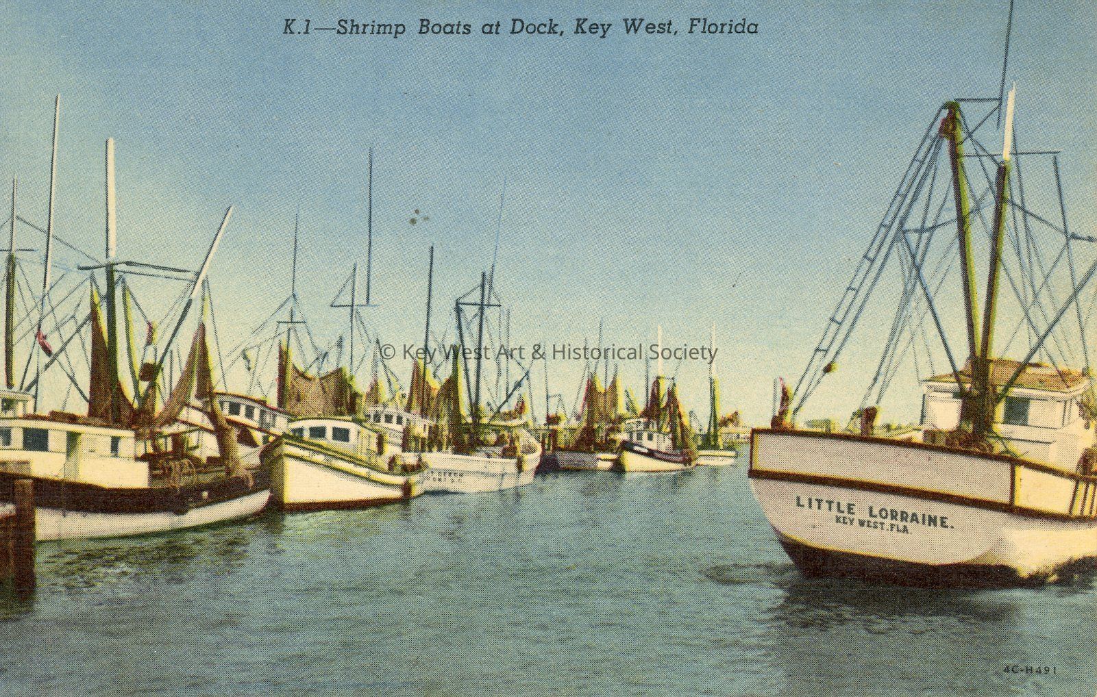Postcard depicting shrimp boats at the dock in Key West, Florida.Subject Place