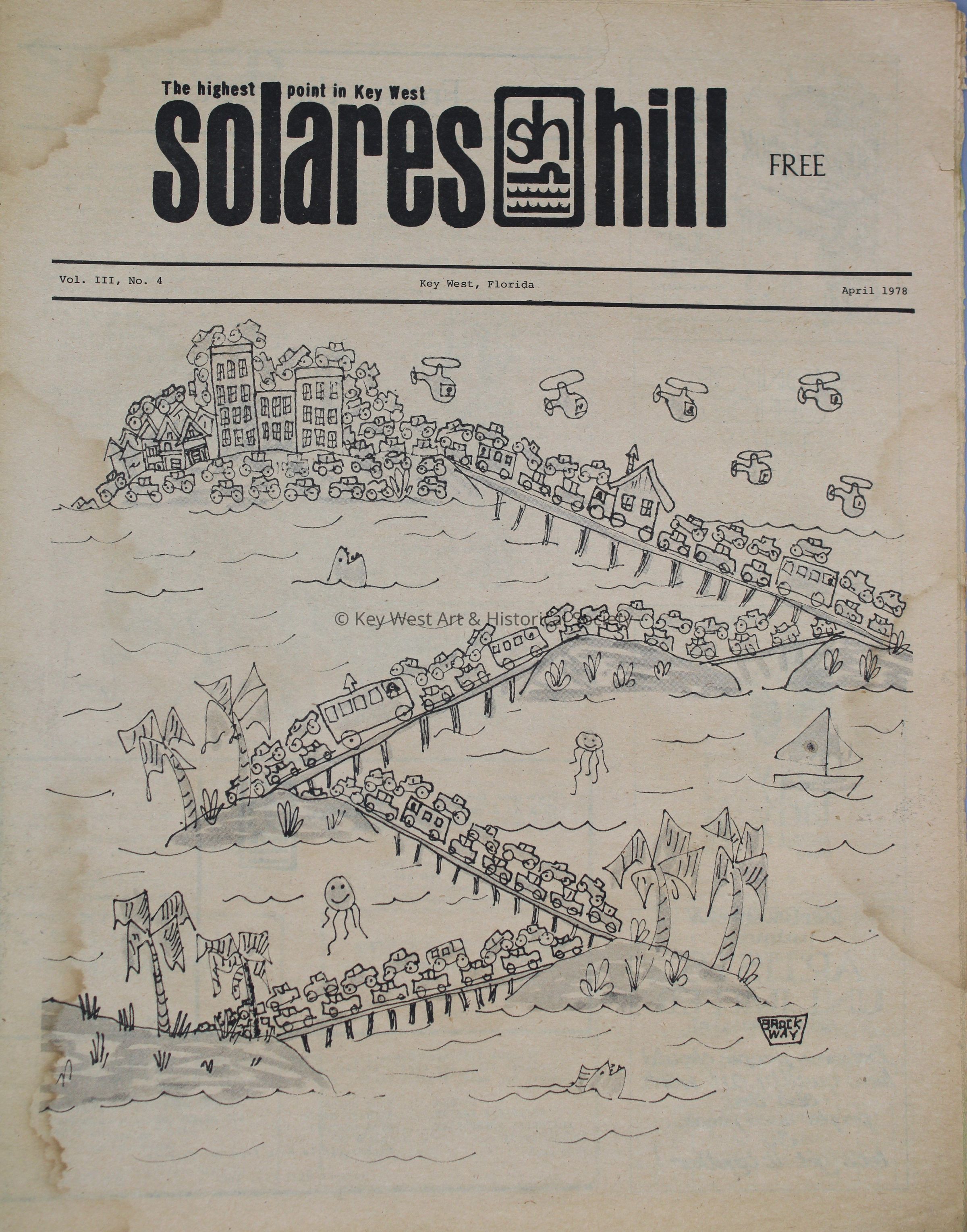 The April 1978 edition of the newspaper Solares Hill containing thirty-six pages. Front page artwork by Brock Way.