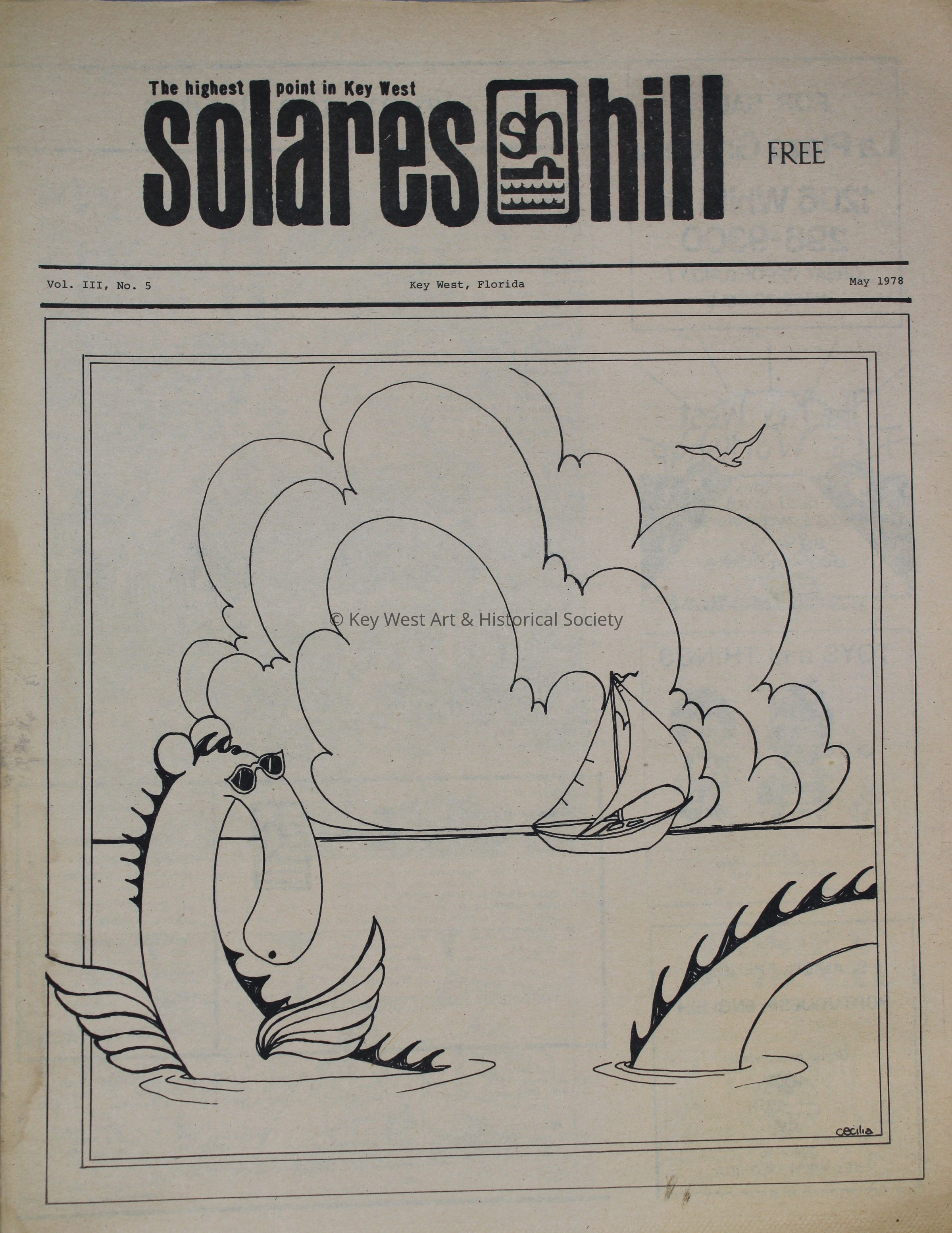 The May 1978 edition of the newspaper Solares Hill containing thirty-two pages. Front page artwork is signed 'Cecilia.'