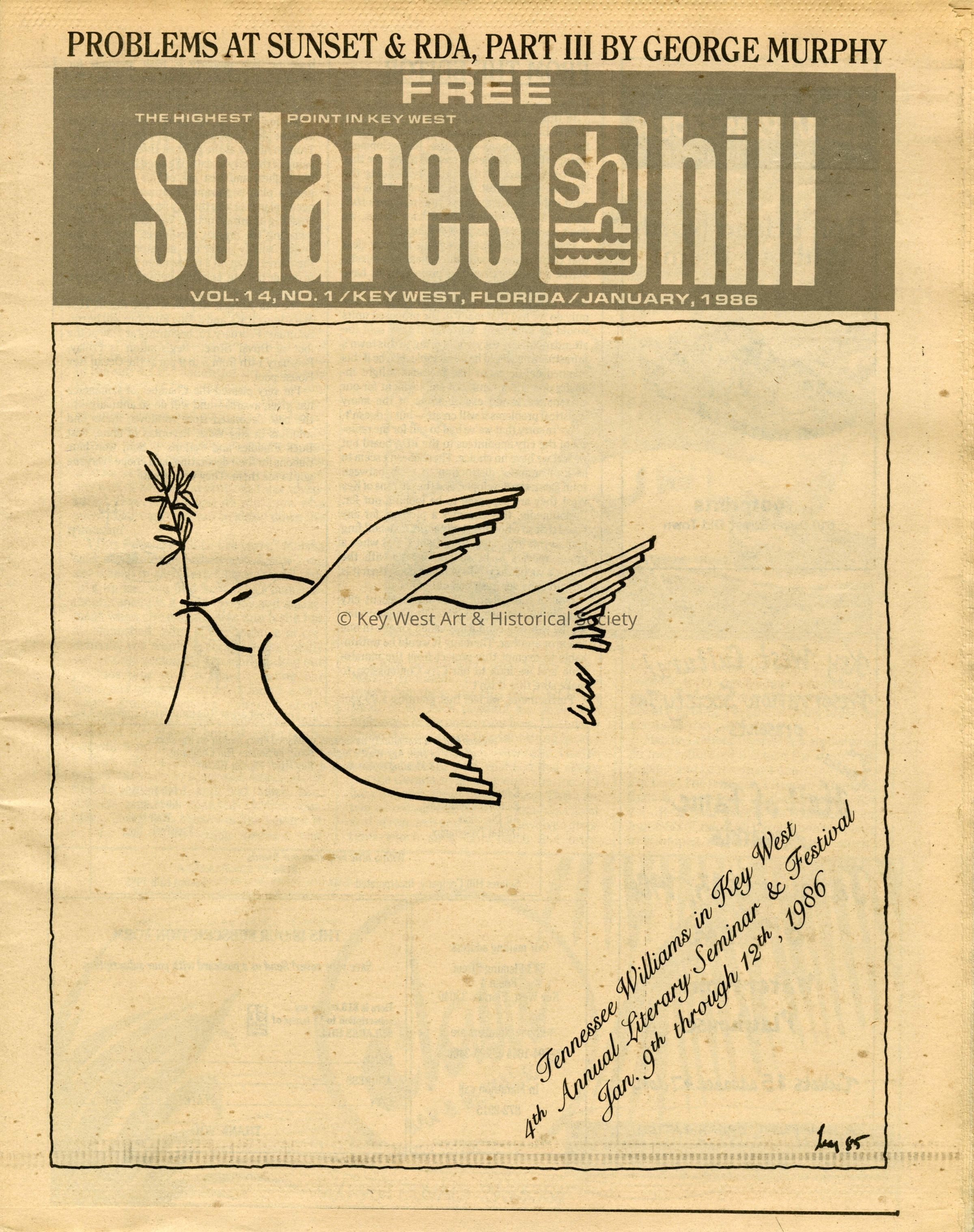 Solares Hill newspaper containing 56 black and white pages. This is the fourth annual Key West Literary Seminar edition focused on Tennessee Williams.