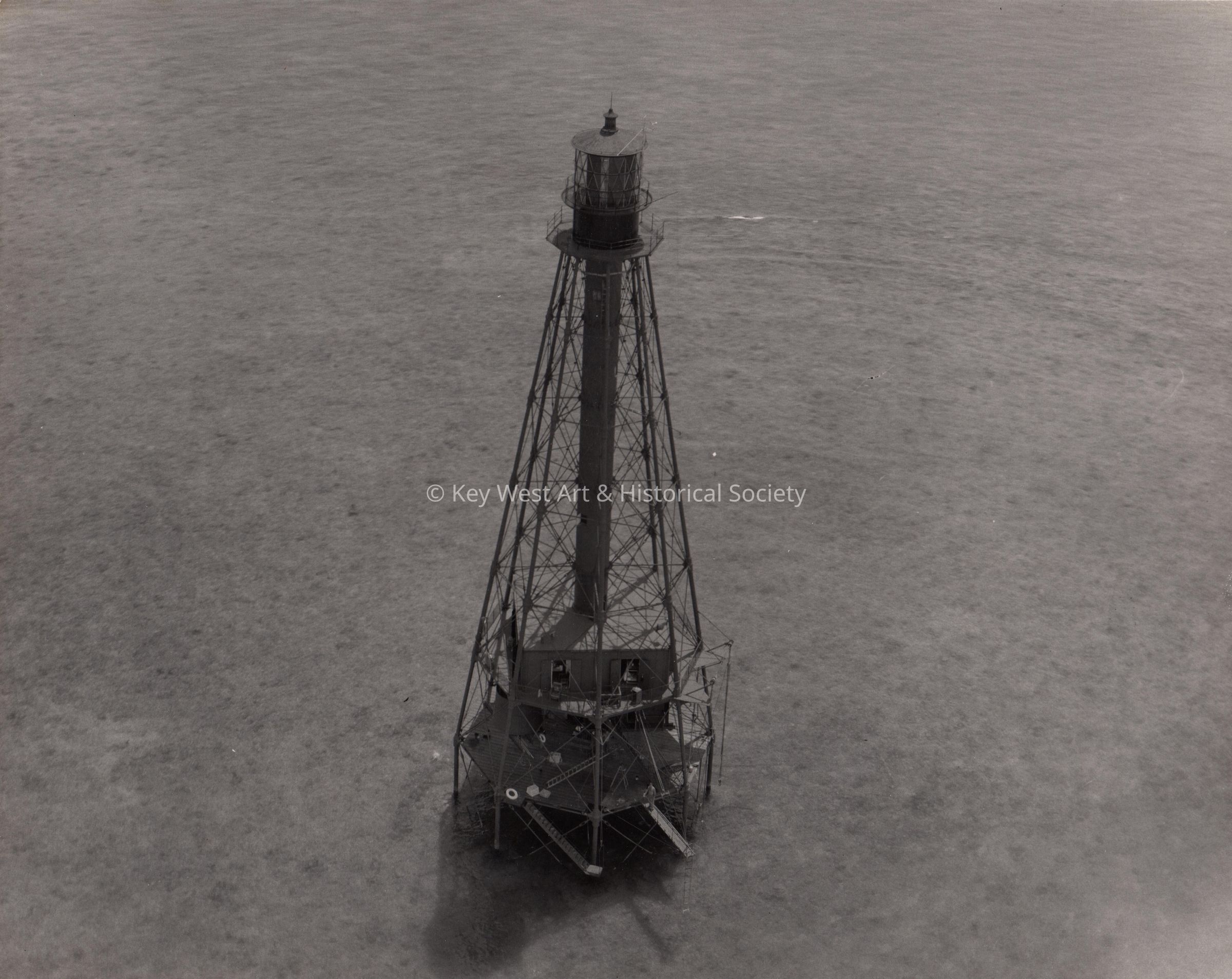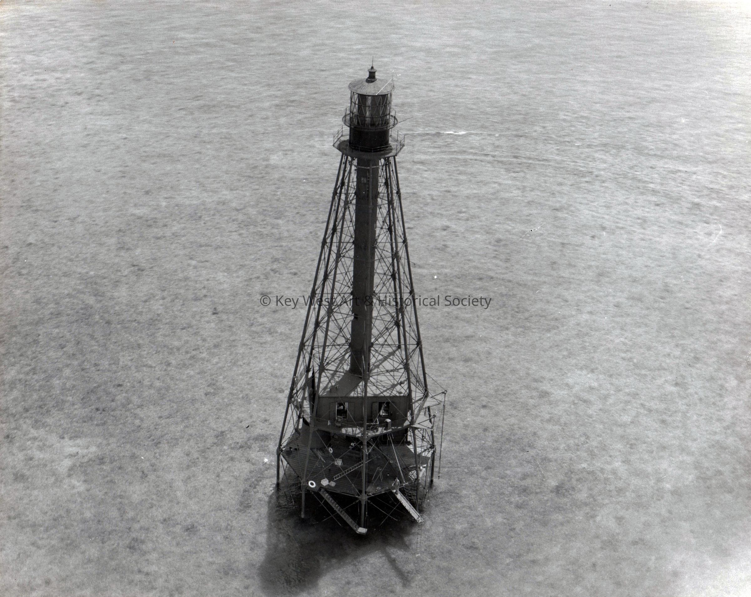 Black and white photograph of Sombrero Key Lighthouse off Marathon, Florida.Collection