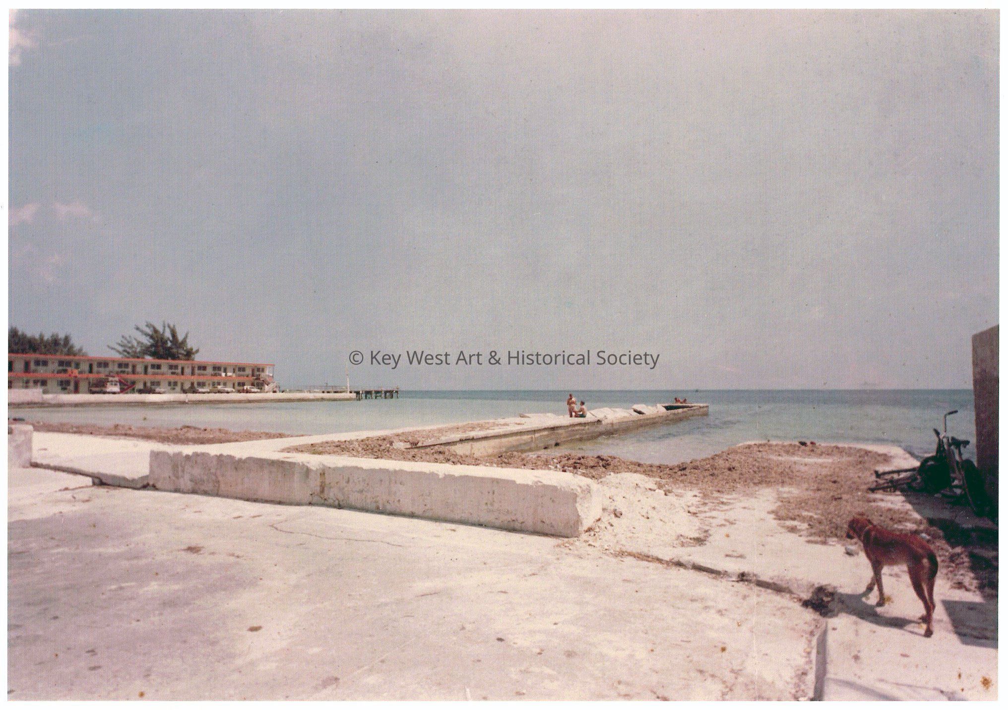Colored digital photo of South beach at the end of Duval. Photo taken in the 1970's. Photo is part of a 'Then and Now' series. Modern photo #2673.