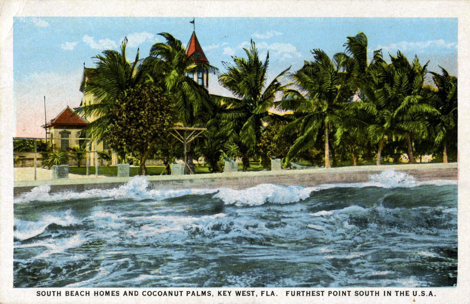 Postcard depicting the Southernmost House. Caption reads, ‘South Beach Homes and Cocoanut Palms, Key West, Florida. Furthest Point South in the U.S.A.’Subject Place