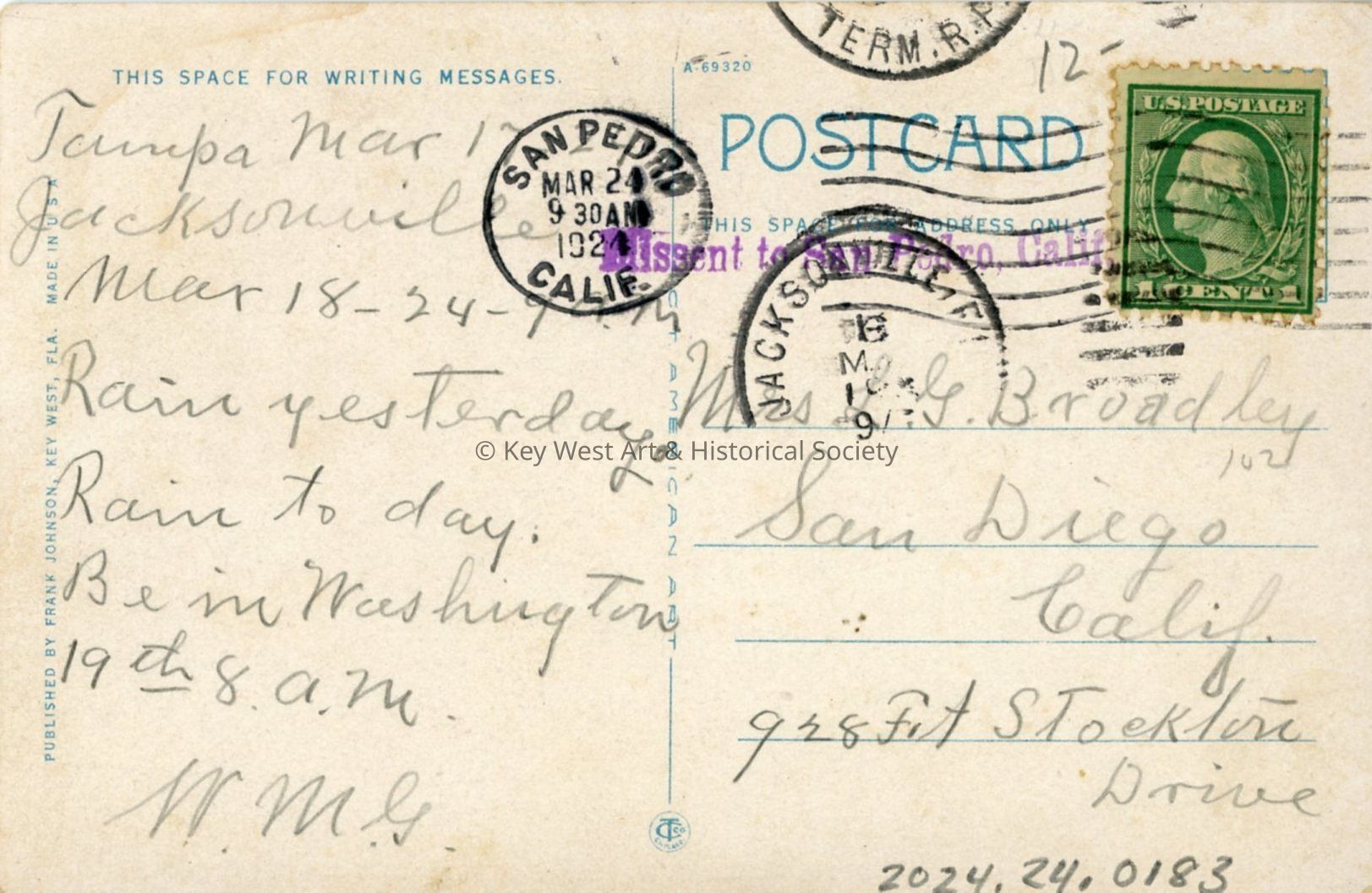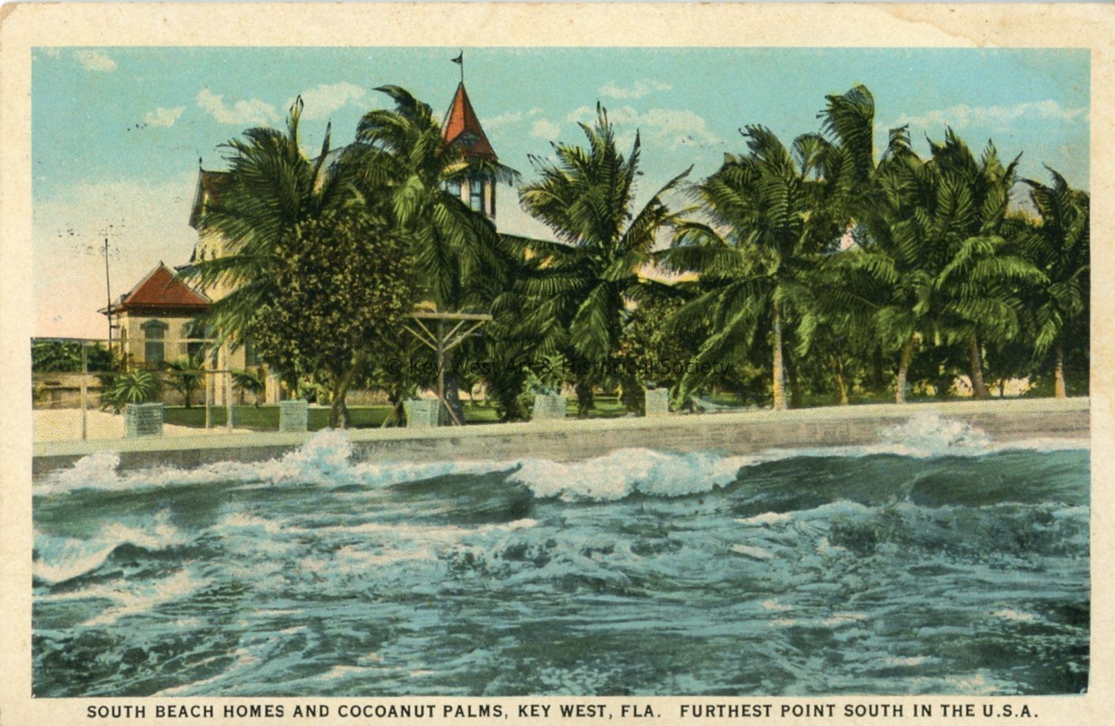 Postcard depicting south beach homes and coconut palms, Key West, FLA. Furthest point south in the U.S.A.Collection
