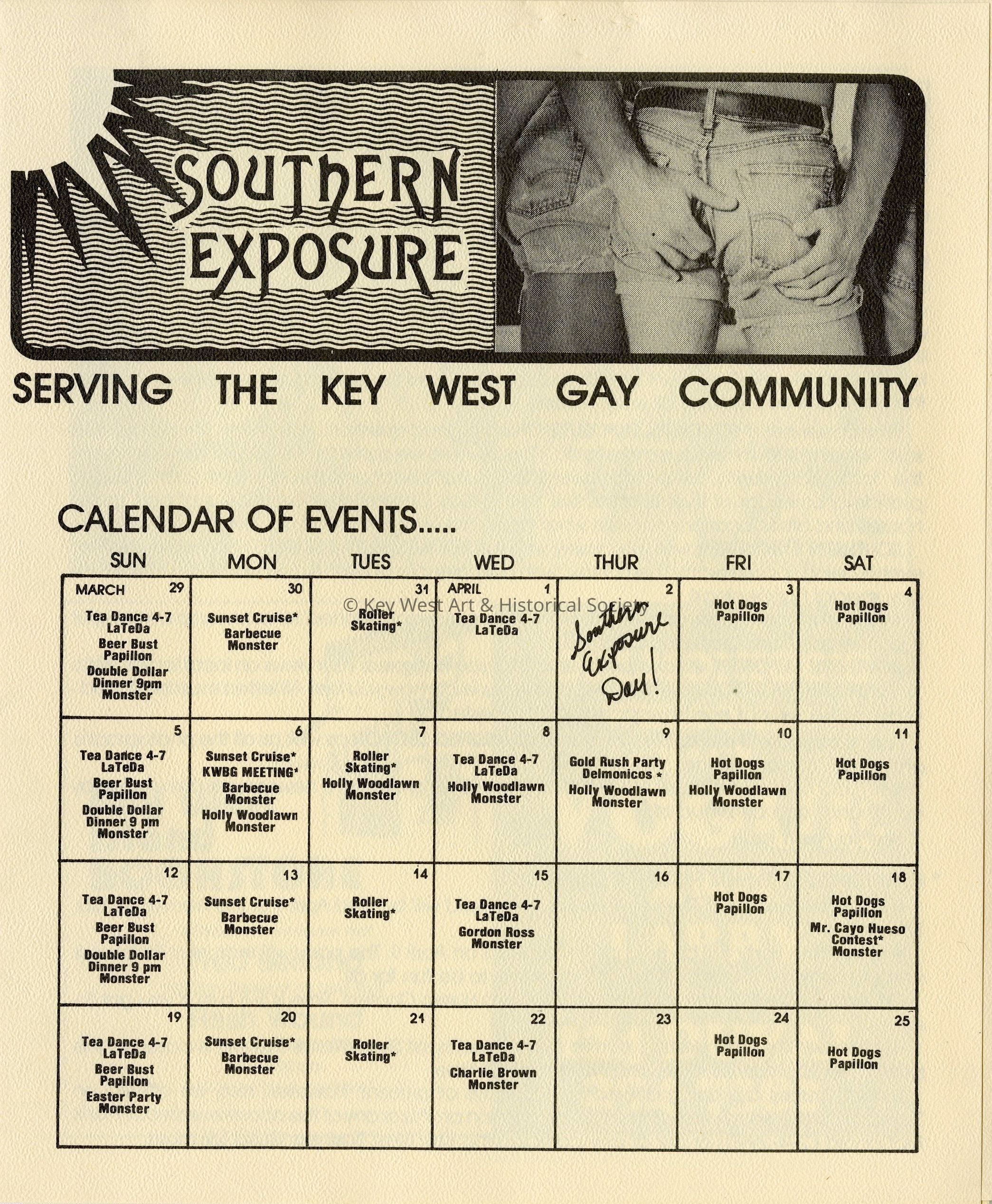Edition of Southern Exposure, a newsletter serving the Key West gay community. Listing for live music, dining, and bars.Collection