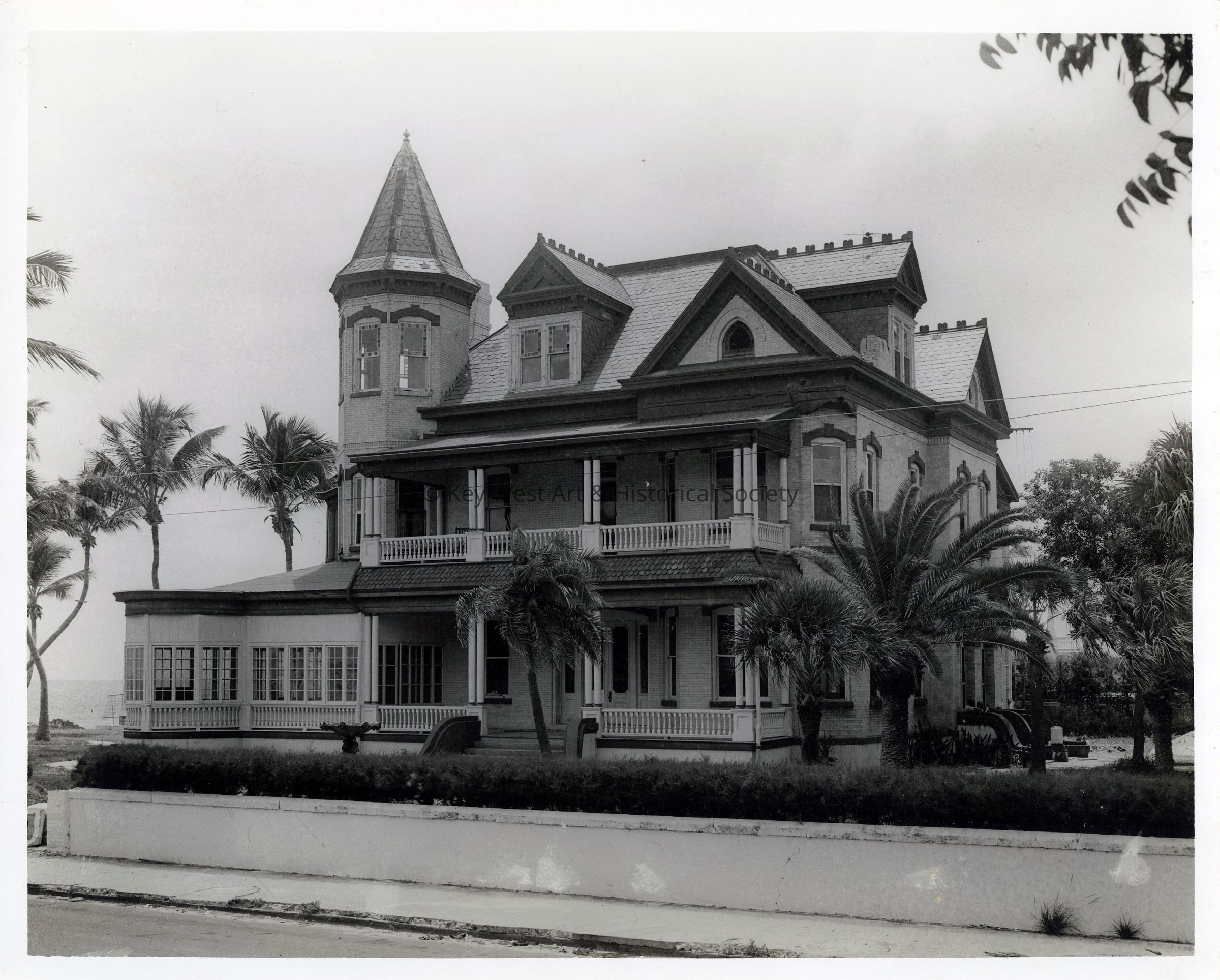 Black and white photograph of the Southernmost House located at 1400 Duval Street when it was owned by the Ramos family.