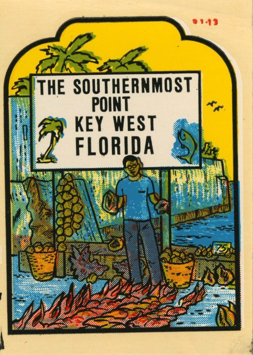 A travel decal created by the Impko company depicting the Southernmost Point with Bishop Albert Leo Kee.Collection