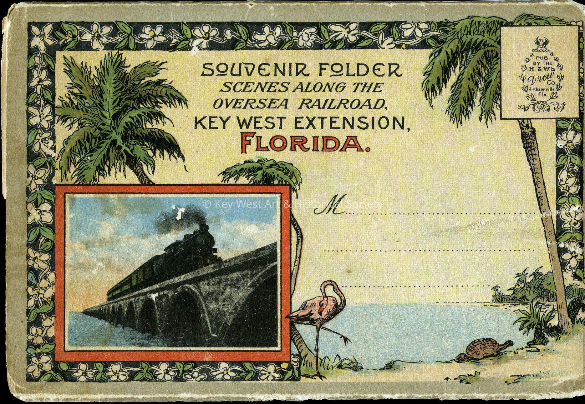 Souvenir folder of cards depicting scenes along the Overseas Railway, Key West Extension. There are 18 images in all, printed on 9 cards folded accordion-style.Subject Person/Organization