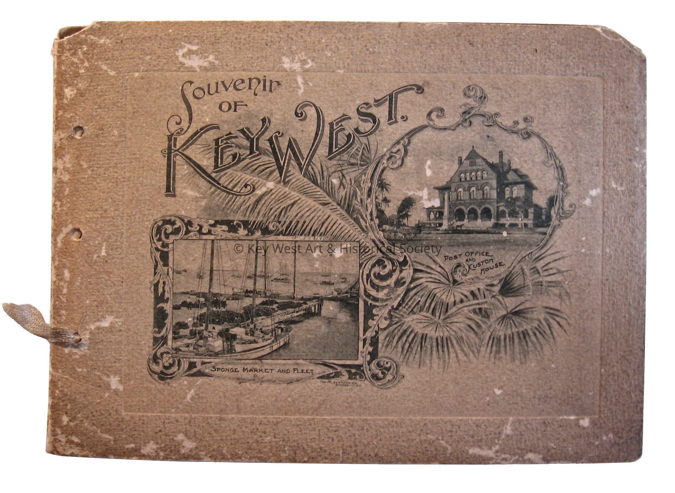 Bound booklet titled 'Souvenir of Key West' that includes 19 pages of black and white images of the island. The cover depicts the Custom House and Post Office building and the Sponge Fleet in Key West Bight.Collection