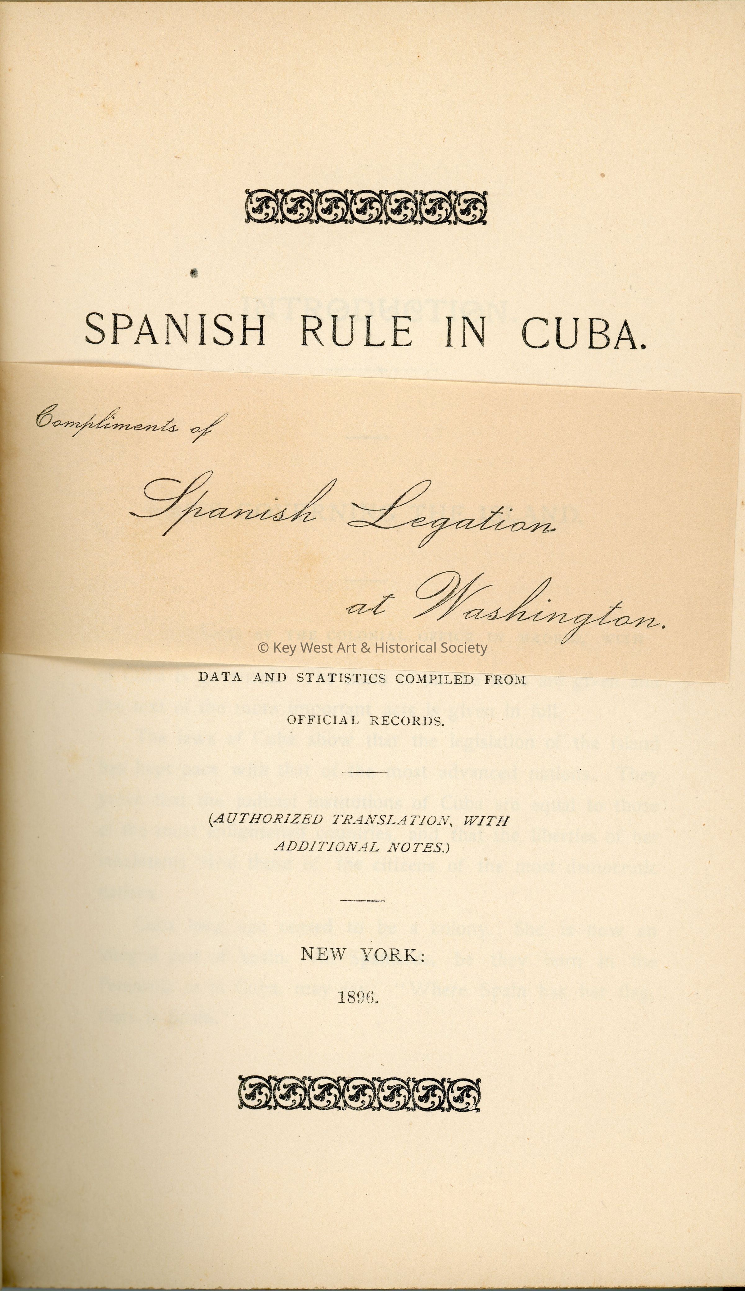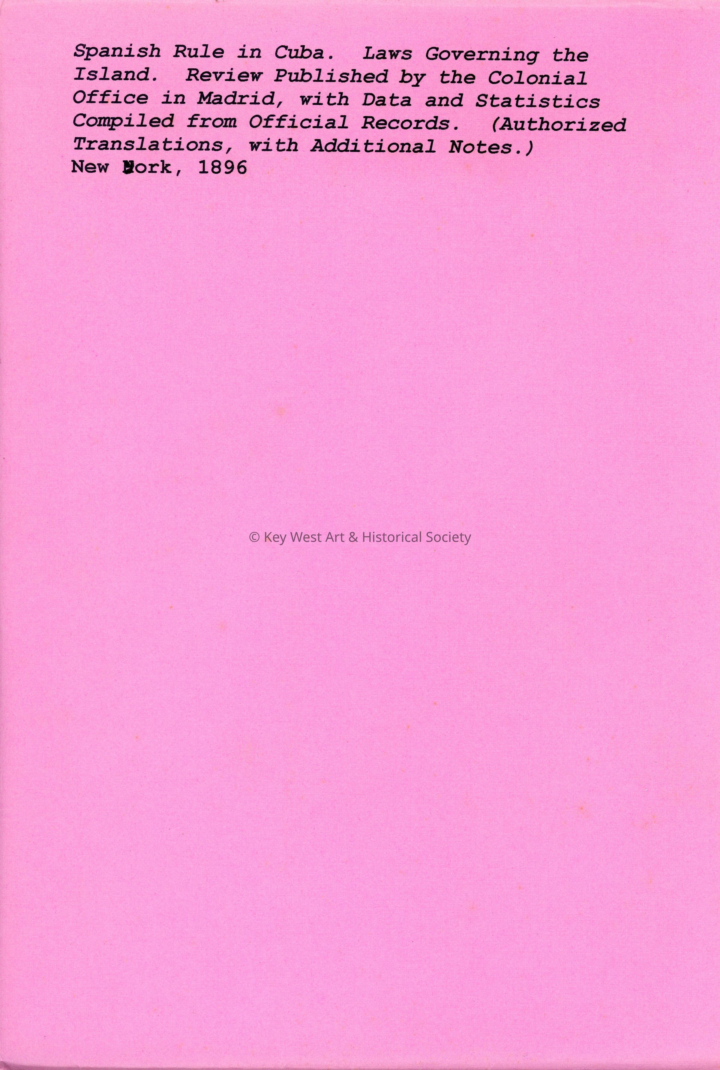Booklet released by the Spanish government detailing the laws and regulations under which the Cubans lived during Spanish rule with the intention to sway public opinion against the Cuban revolt.Collection