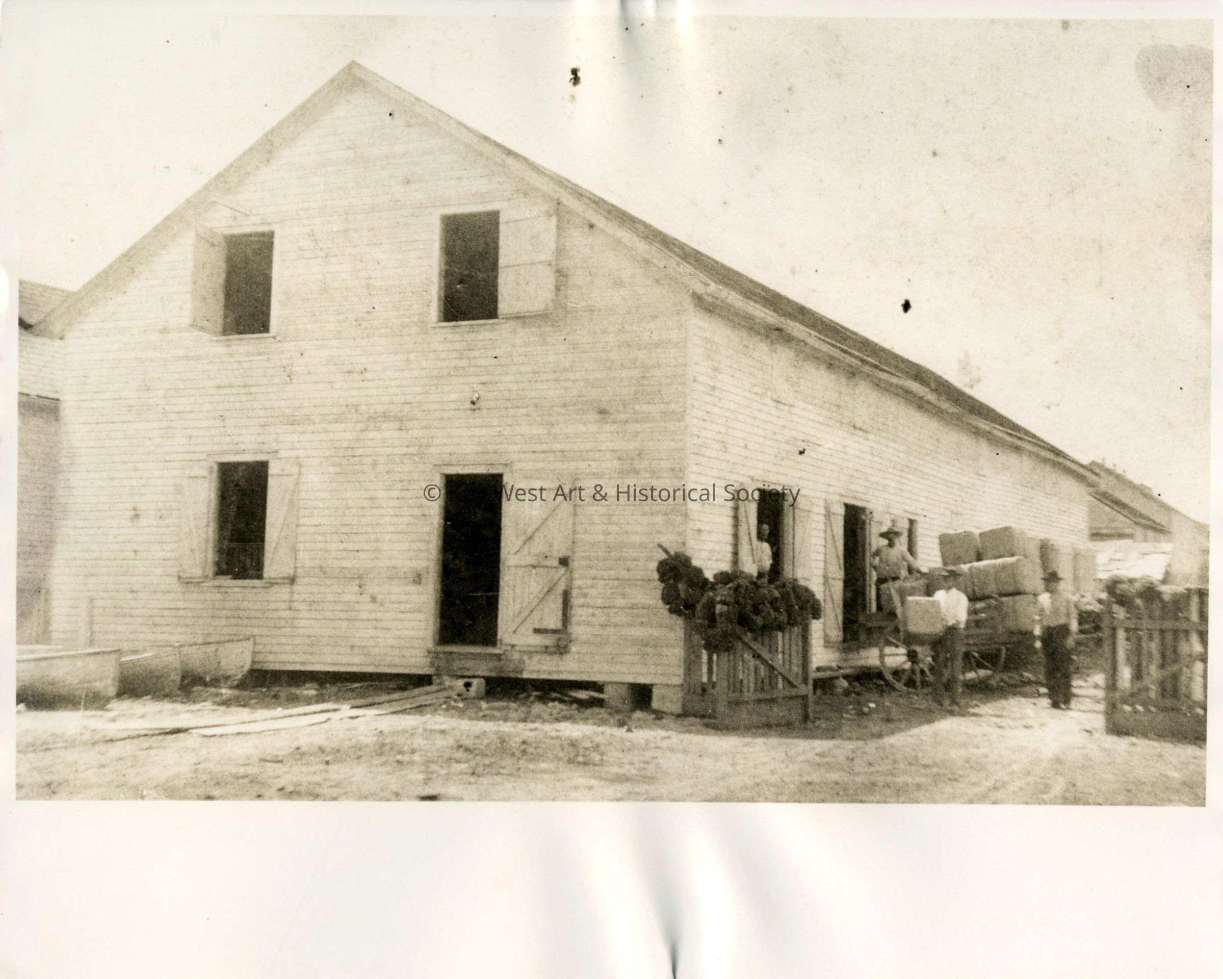 Black and white photograph of a sponge warehouse.