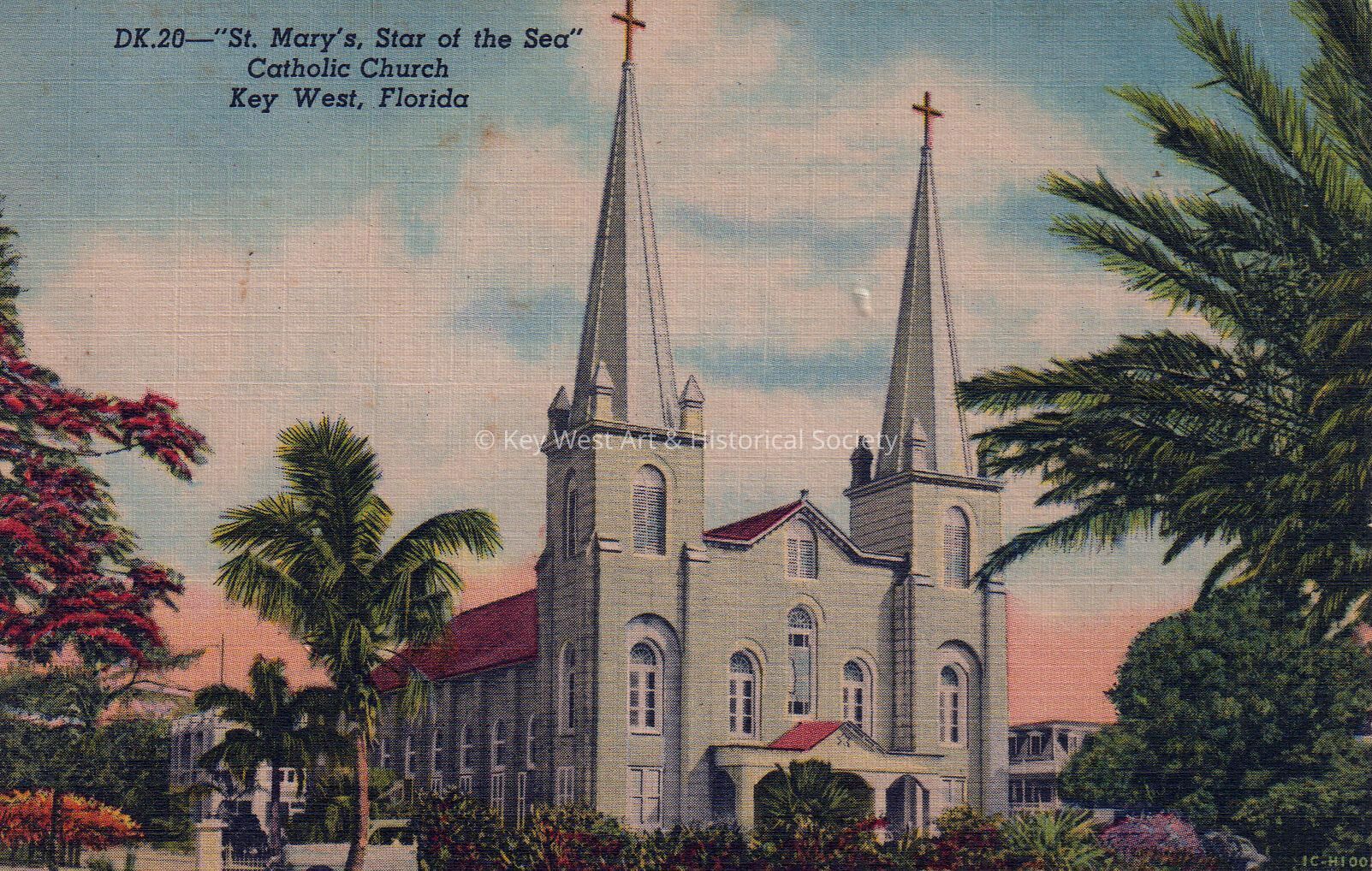 Postcard of St. Mary’s Star of the Sea Catholic Church. The caption reads, ‘St. Mary’s Star of the Sea Catholic Church, Key West, Florida’.Subject Place