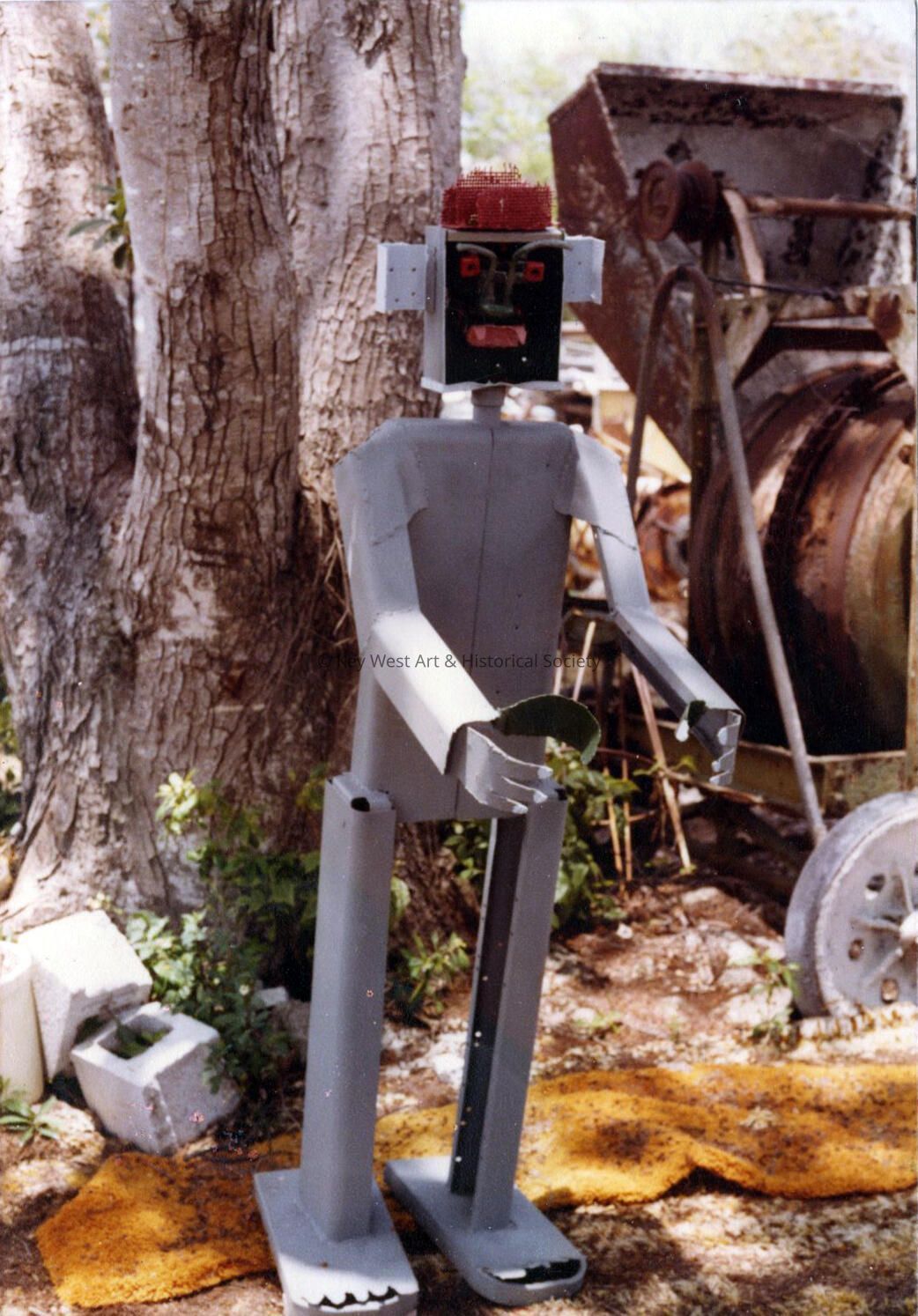 Color photograph of the Stanley Papio's Robot sculpture taken at his Folk Art Museum in Key Largo.