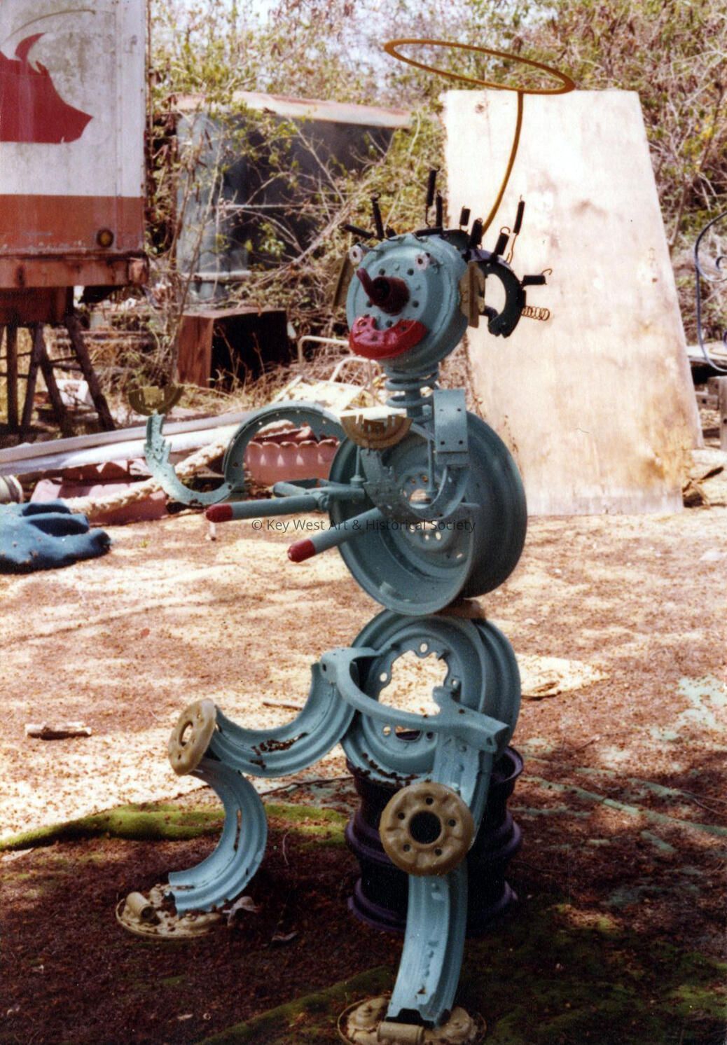 Color photograph of the Stanley Papio's Sit and Think sculpture taken at his Folk Art Museum in Key Largo.