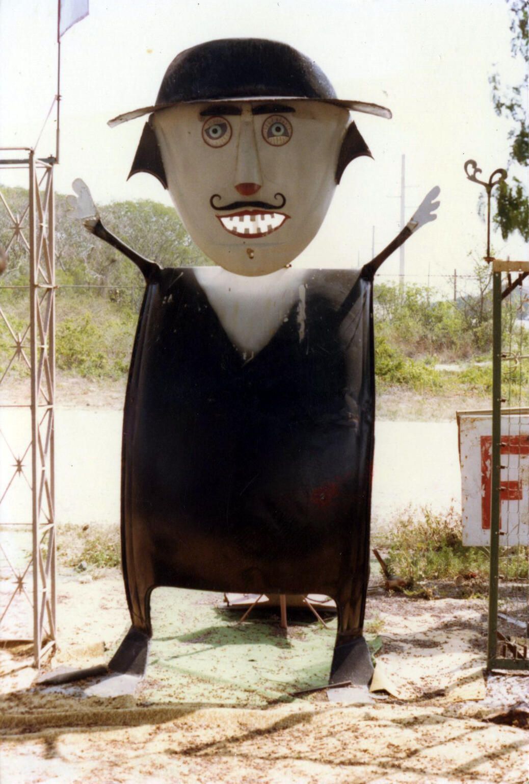 Color photograph of the Stanley Papio's The Preacher sculpture taken at his Folk Art Museum in Key Largo.