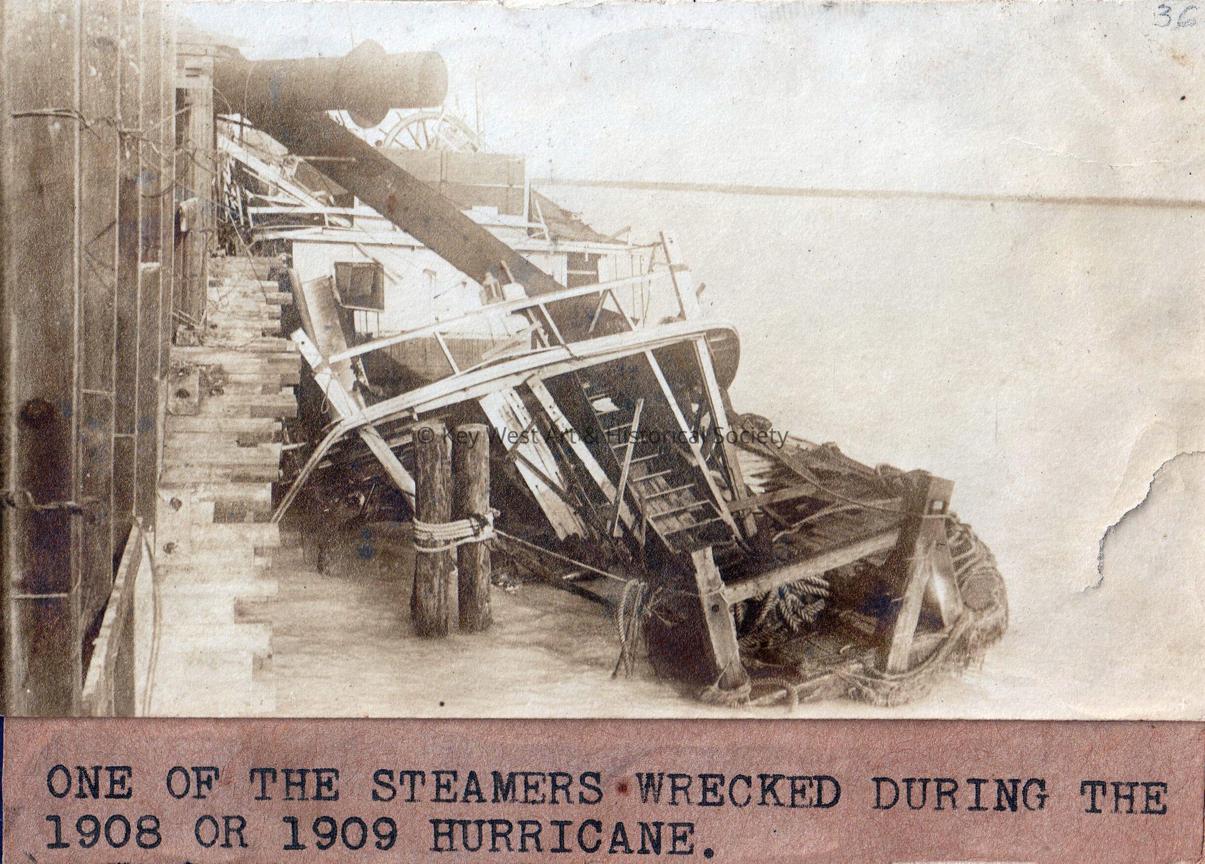Steamer sinking at pier in Key West, in 1906, 1908, or 1909.Collection