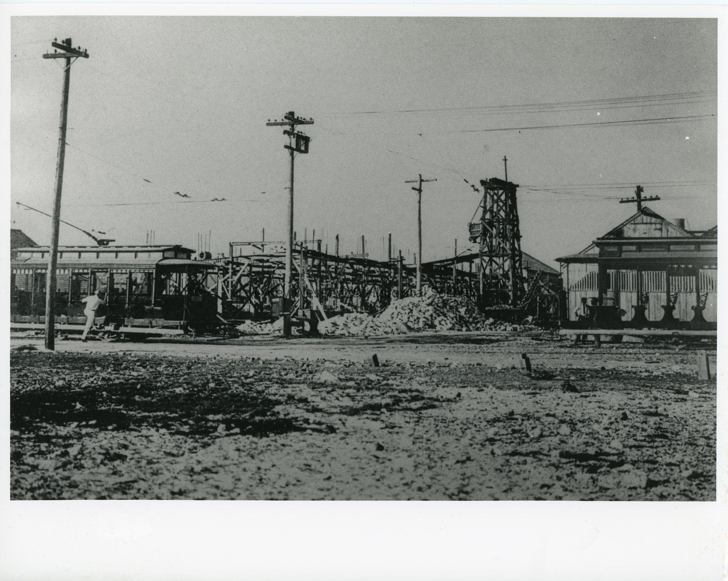 Black and white photograph of street cars on north end of Duval Street.