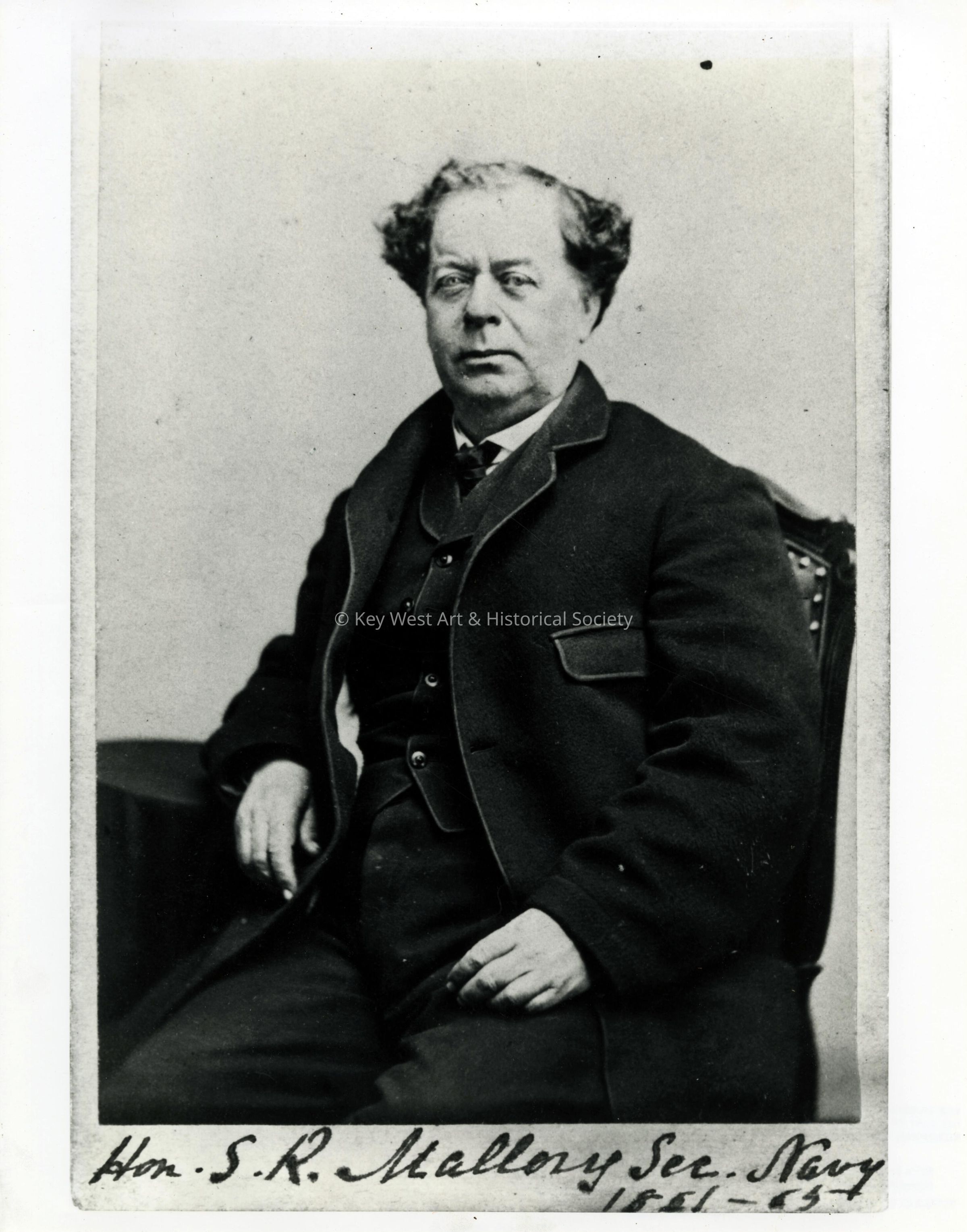 Black and white portrait of Stephen Russell Mallory taken from a carte de visite. Mallory was raised on the island of Key West eventually becoming a lawyer and Inspector of Customs and then Collector of Customs on the island. He became a Democratic senator from Florida beginning in 1851 until the secession of his home state and the outbreak of the American Civil War. When the Confederate States of America was formed, he was named Secretary of the Navy in the administration of President Jefferson Davis. He held the position throughout the existence of the Confederacy.