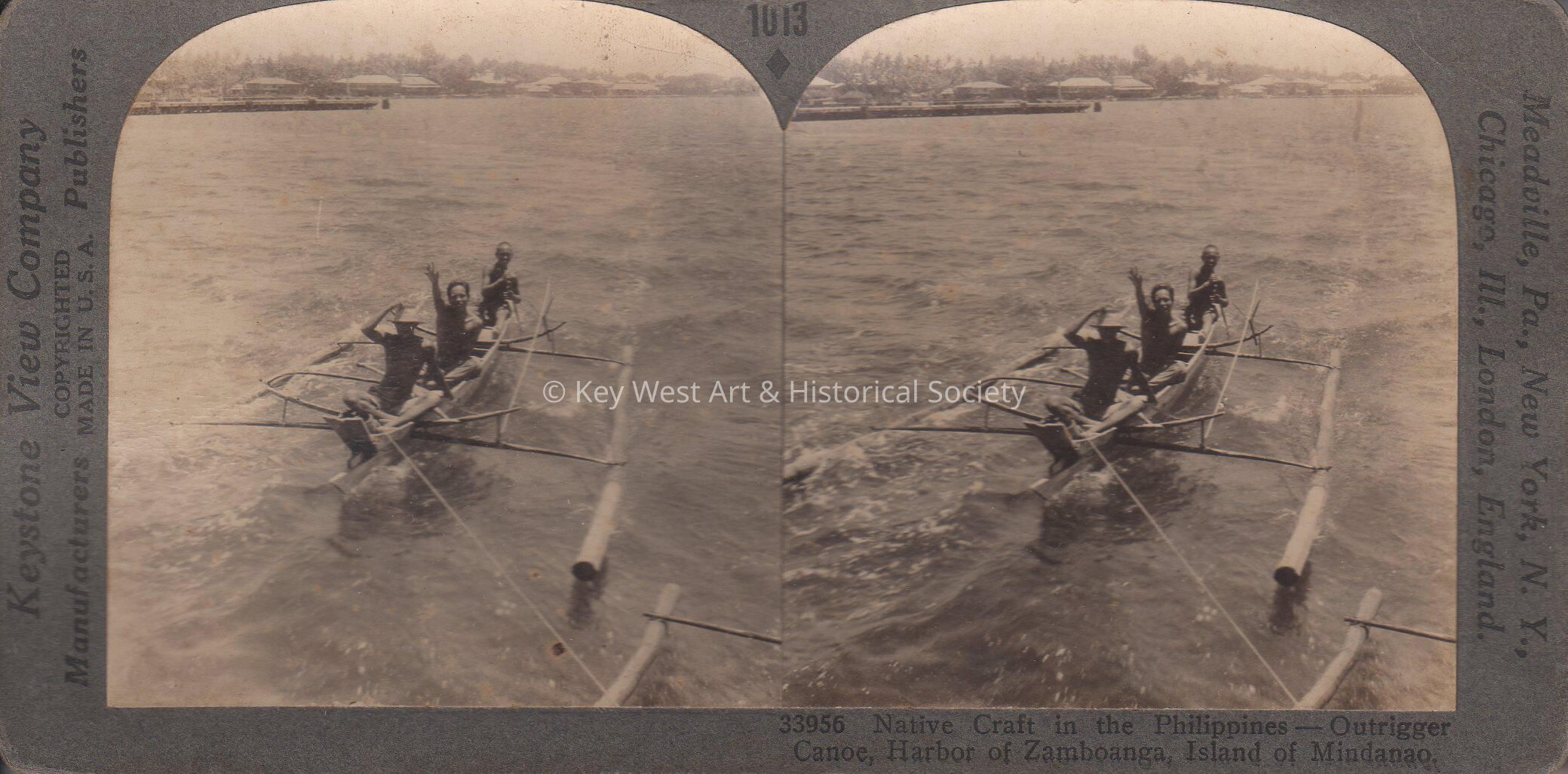 1013, Native craft in the Philippines - outrigger canoe, Harbor of Zamboanga, Island of Mindanao.