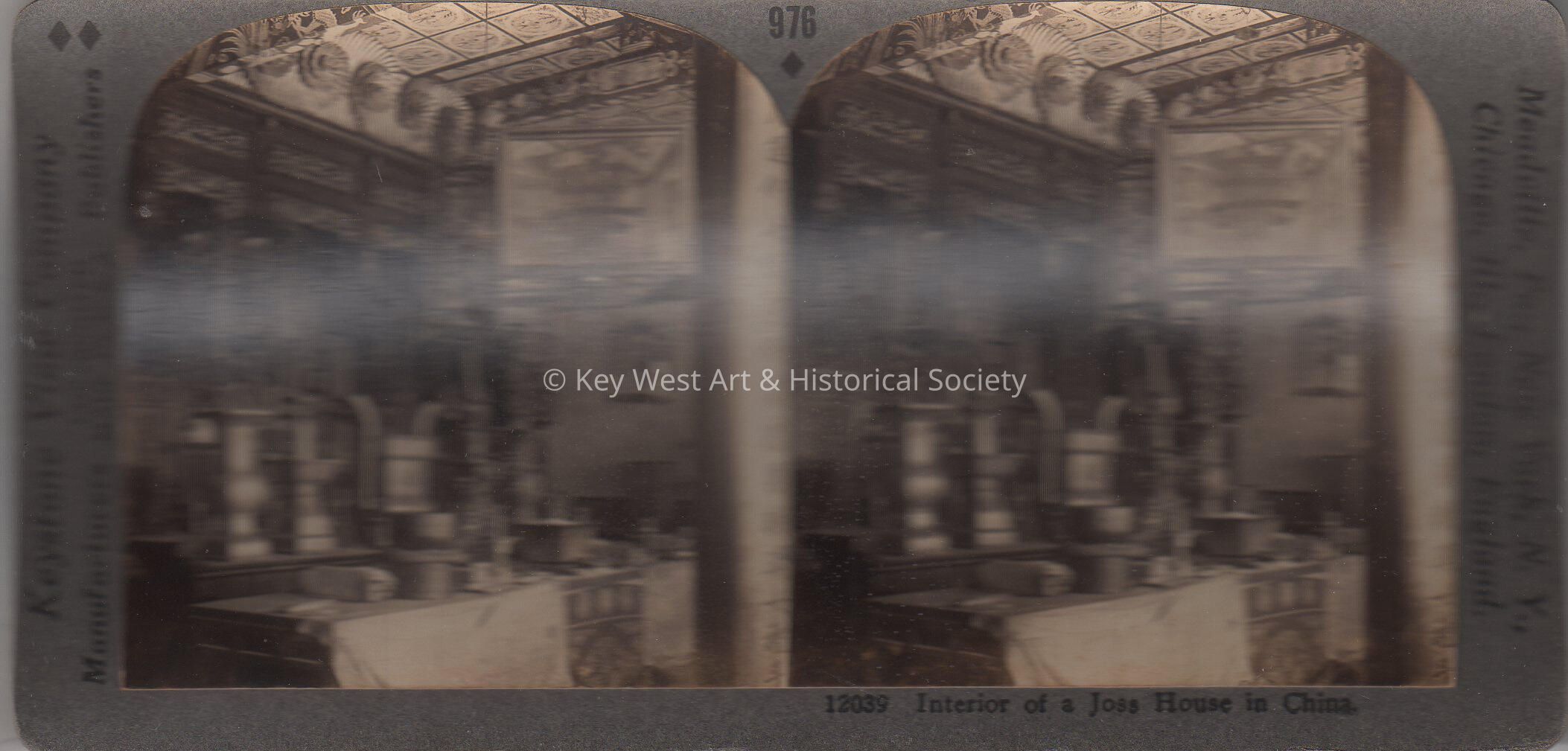 Stereogram of the interior of a native temple in China