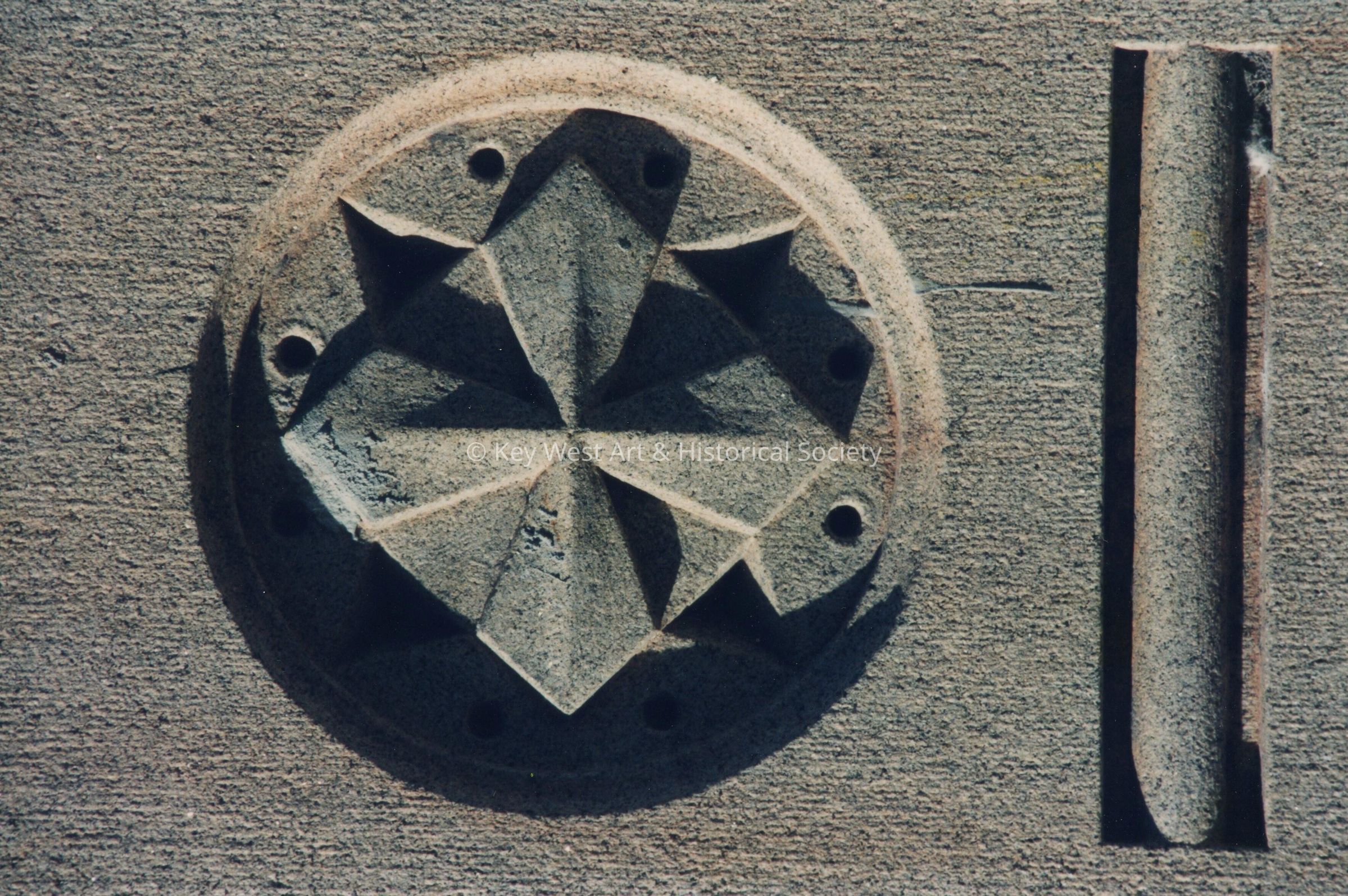 Stone detail on the end caps of the exterior side stairway.Entry/Object ID