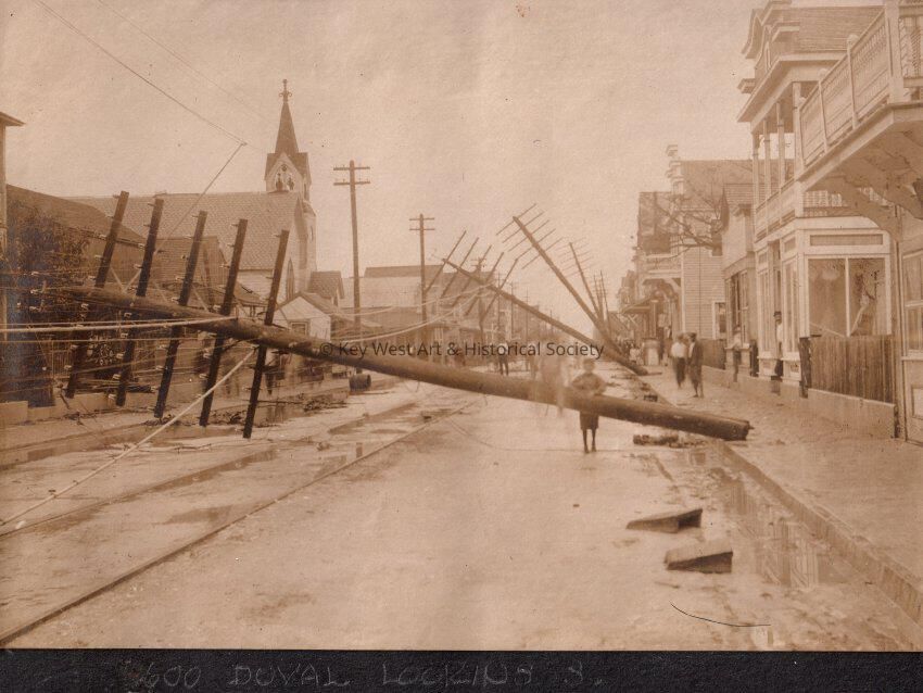 The 600 Block of Duval Street looking South with telephone poles down, in Key West.Collection