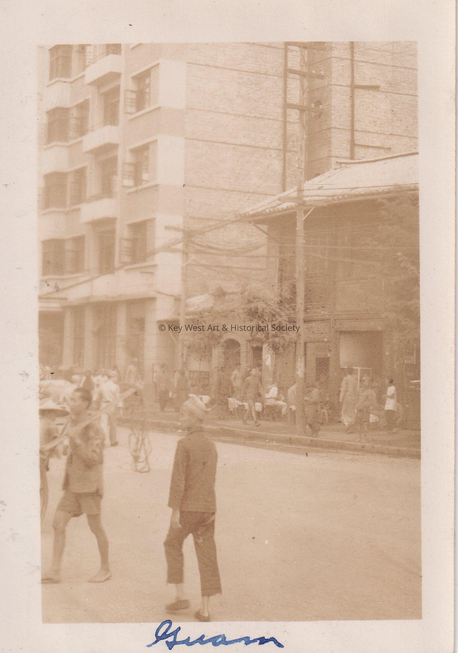 From the U.S.S. Key West (PF-17) in World War II; street scene in Guam.