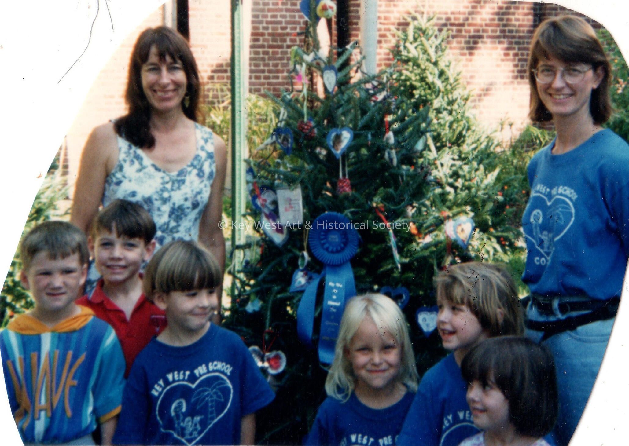 Teacher and students at East Martello with a Christmas Tree, in 1994.Collection