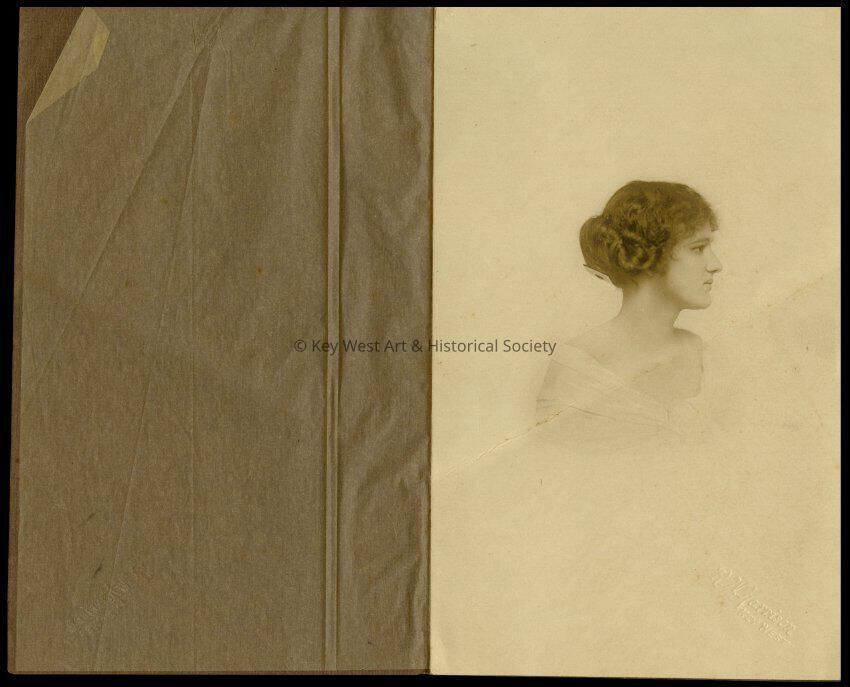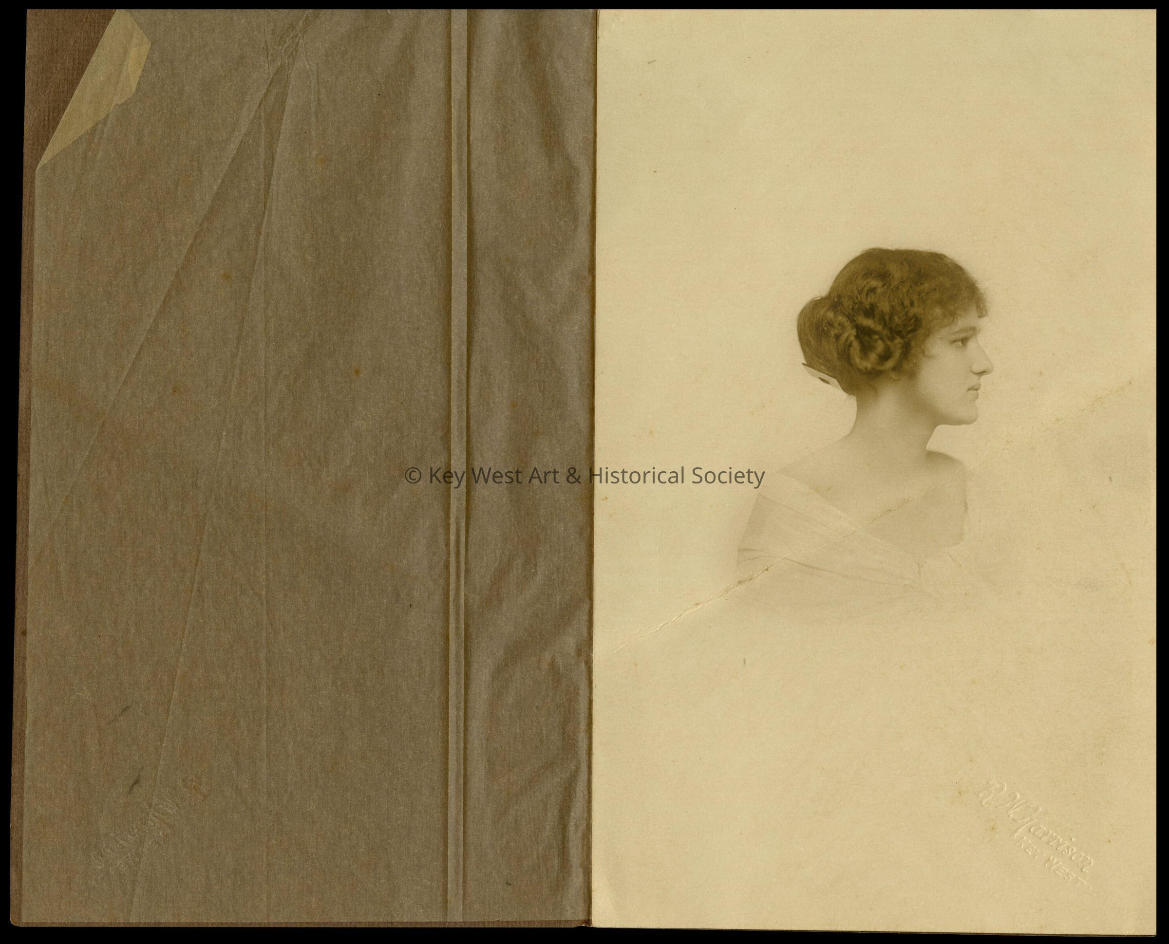 Black and white studio portrait of an unknown woman taken by R.W. Harrison Studio in Key West. Portrait is in presentation folder.Collection